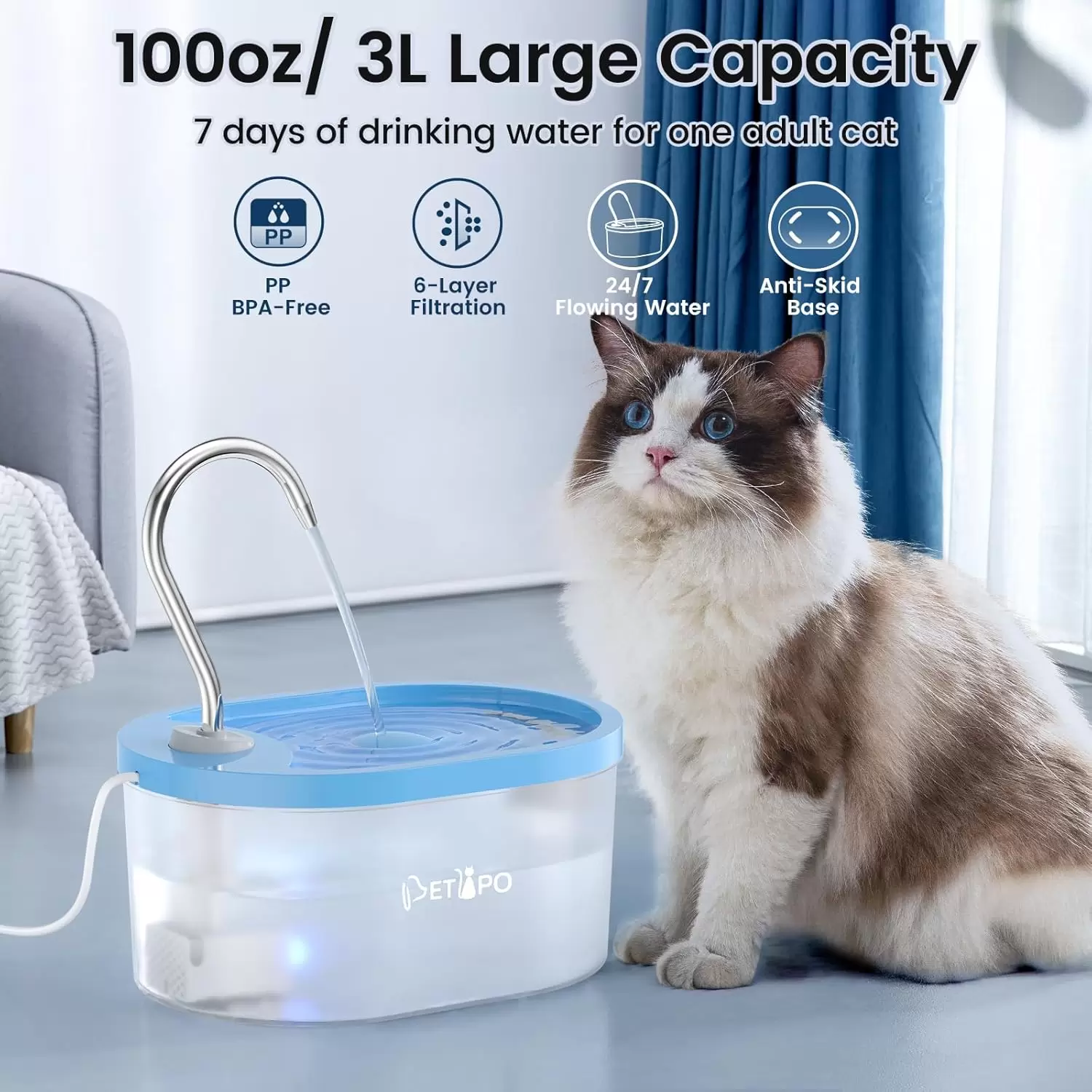 Asegúrate de que tu mascota se mantenga hidratada con facilidad: la fuente de agua para mascotas de 100 onzas / 3 litros de Petlipo, está hecha para mascotas pequeñas a medianas. Perfecto para uso doméstico o viajes, ofrece agua continua de alta calidad, que requiere solo recargas semanales para la hidratación de tu mascota