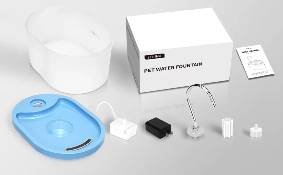 | Componentes incluidos | 1 manual de instrucciones (idioma español no garantizado)., 1 manual de instrucciones (idioma español no garantizado), 1 fuente de agua para mascotas (9.65 x 6.8 x 4.6 pulgadas), 1 bomba de CC (con un cable de alimentación de 5.09 pies), 1 filtro, 1 esponja de filtro, 1 x adaptador (AC 100-240V) |