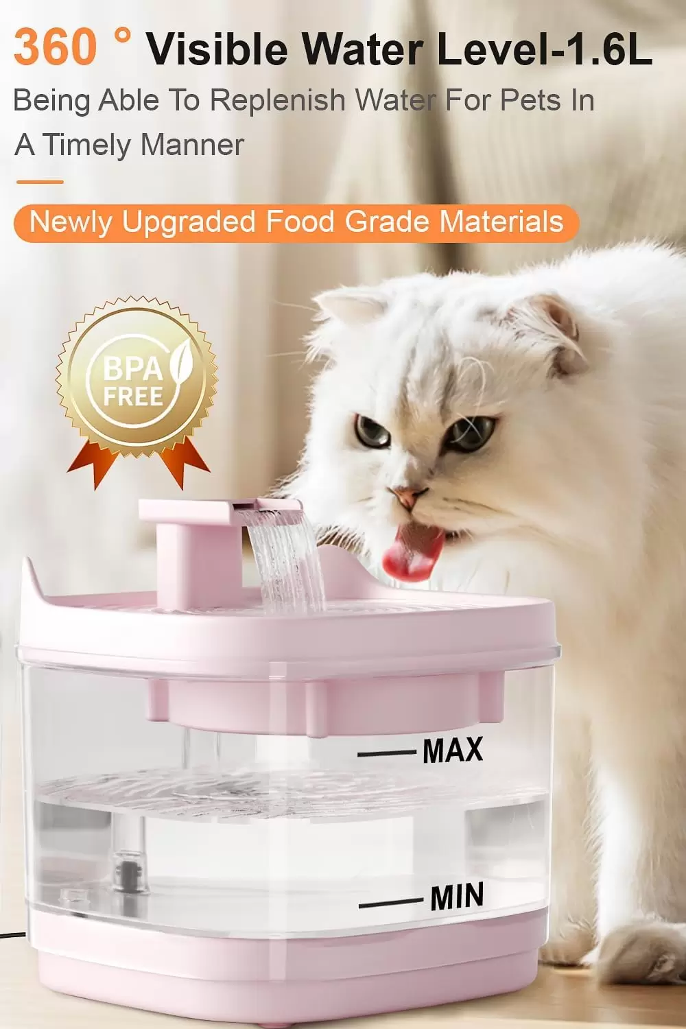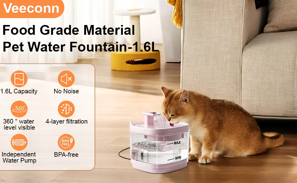 Material seguro y fácil de limpiar: la fuente de agua Cat tiene 1.6 litros (54 onzas líquidas) hecha de materiales de grado alimenticio, no irritante. no solo es resistente a la corrosión, sino que también puede soportar la limpieza a alta temperatura, asegurando la higiene y seguridad de las fuentes de bebida. Gracias a su diseño desmontable, cada pieza es fácil de desmontar y se puede enjuagar directamente con agua, por lo que es fácil de limpiar y mantener.