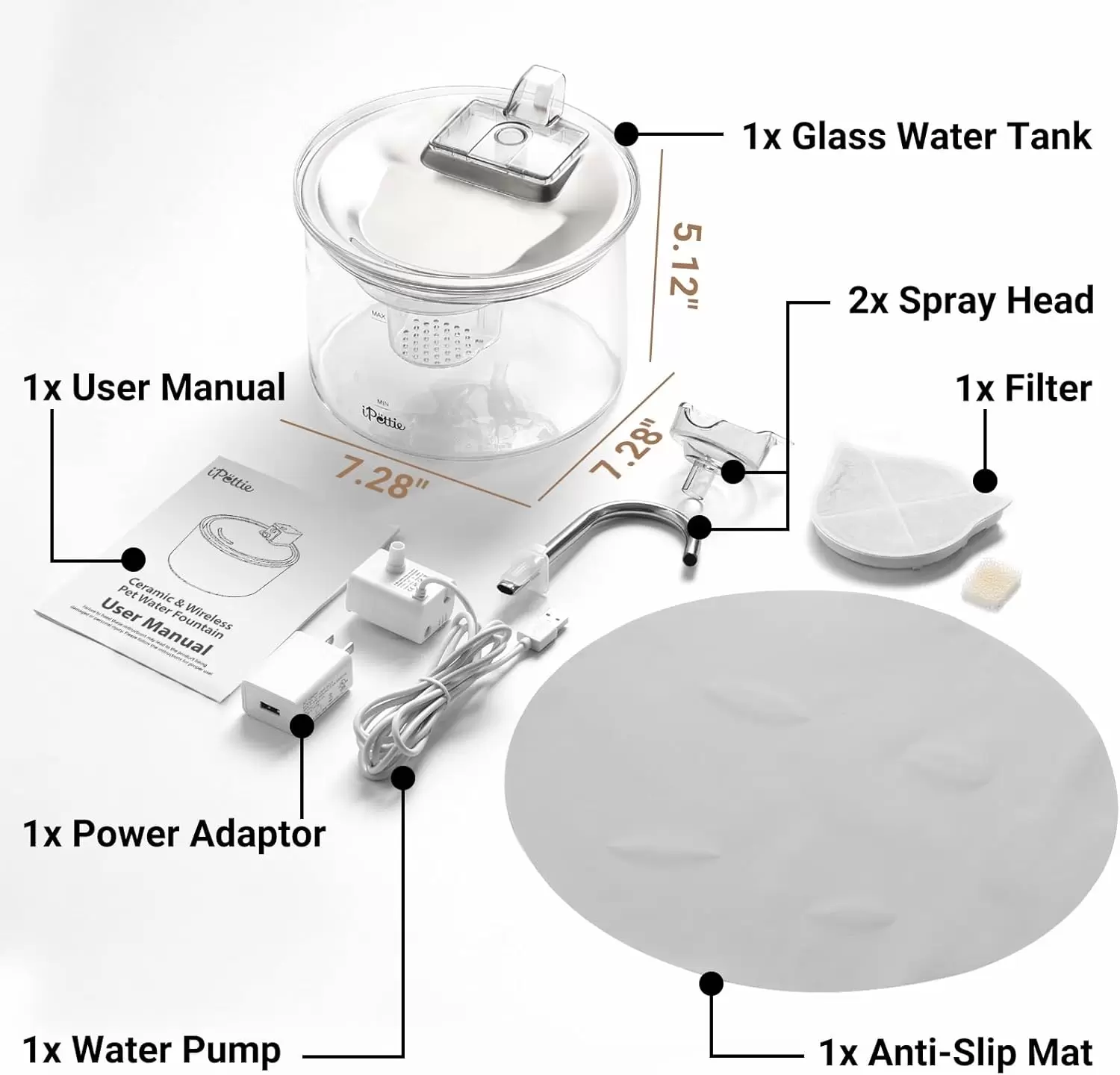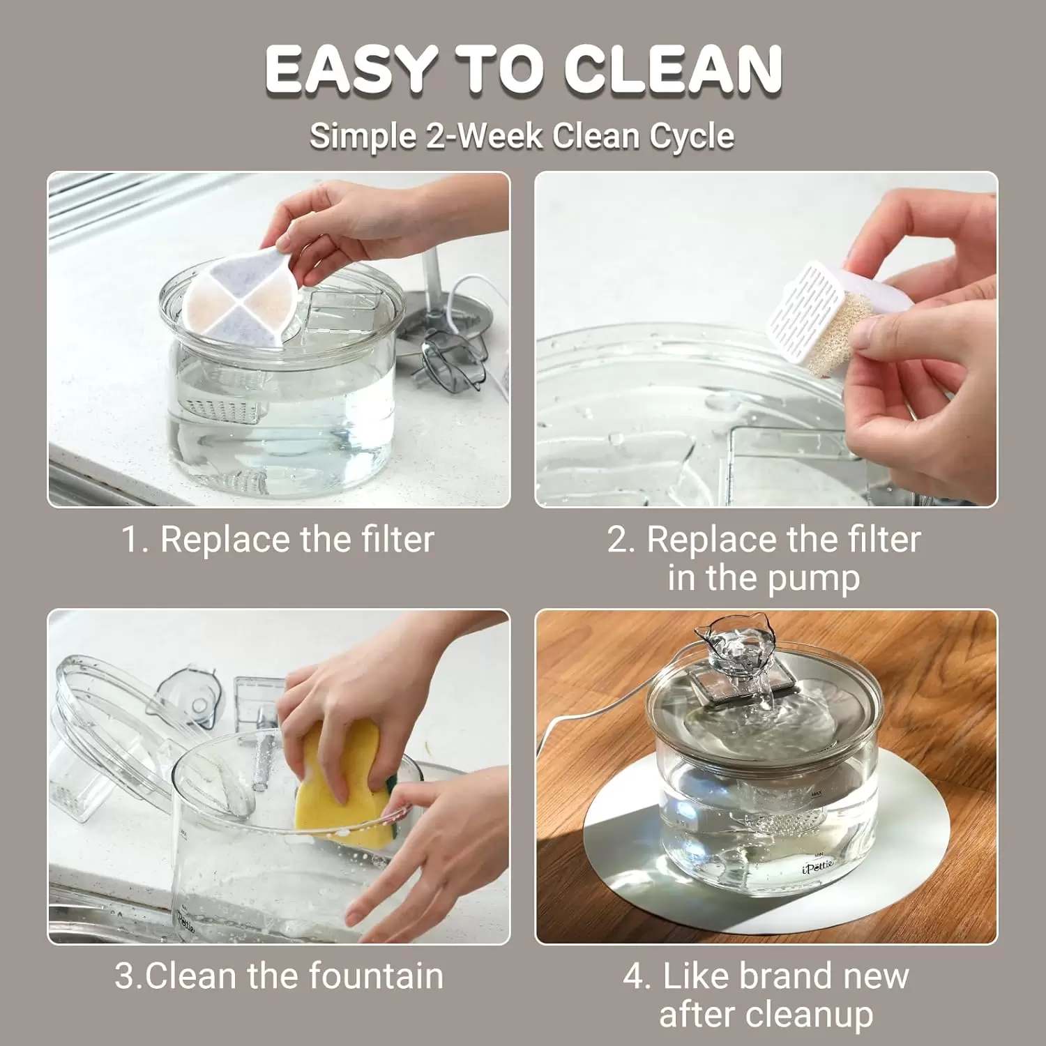 Esta fuente une lo mejor de dos mundos para garantizar la salud de tu mascota. Su tanque de vidrio transparente te permite verificar la pureza y el nivel del agua de un solo vistazo, eliminando las dudas sobre cuándo rellenar. La bandeja superior, donde bebe tu mascota, es de Acero Inoxidable, evitando la acumulación de bacterias, los malos olores del plástico y previniendo el acné felino. Además, ambos materiales son aptos para lavavajillas.