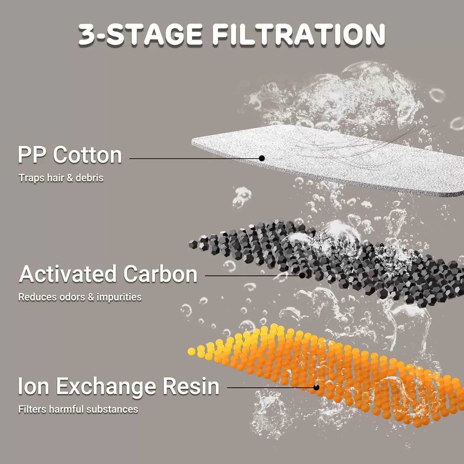 Filtración Triple: Algodón, carbón activado y resina para agua cristalina.
