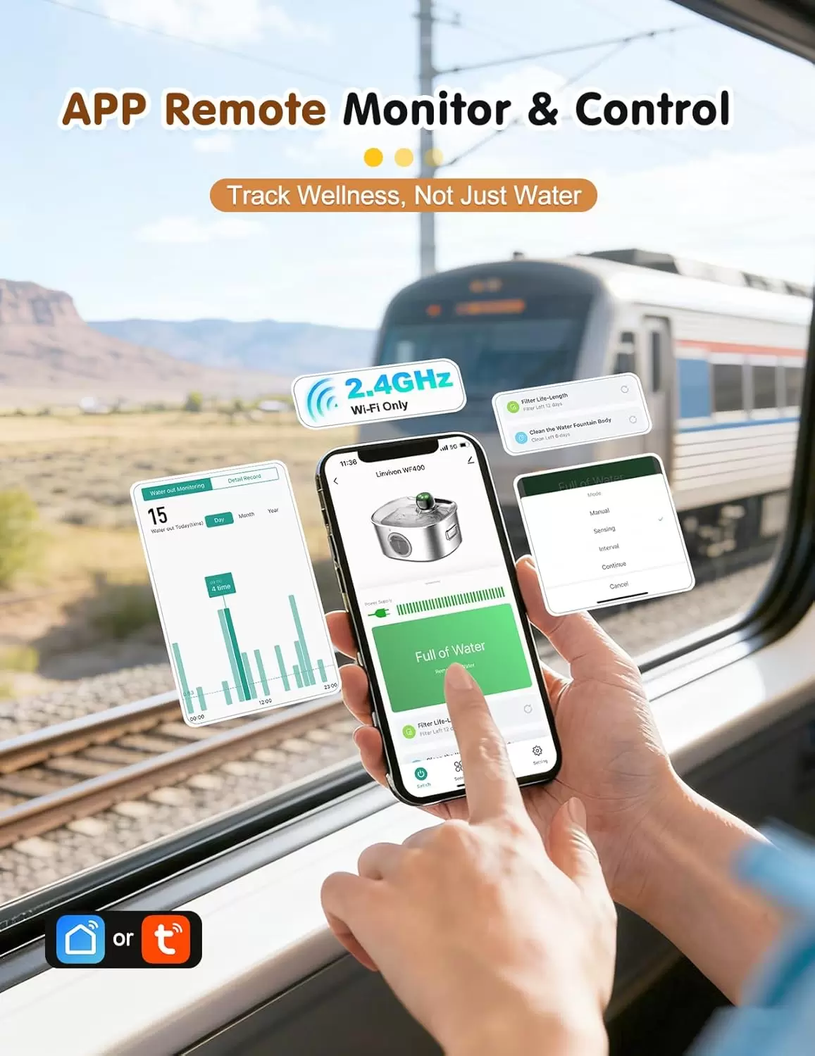 El primer bebedero que cuida la salud de tu mascota a distancia Lleva el cuidado de tus mascotas al siguiente nivel con esta fuente de agua inteligente de 10 litros. Gracias a su conexión WiFi y aplicación móvil, puedes saber exactamente cuánta agua bebe tu perro o gato cada día, estés donde estés. Es la herramienta perfecta para dueños preocupados por la salud renal de sus mascotas o para quienes pasan muchas horas fuera de casa y quieren tener el control total desde su smartphone.