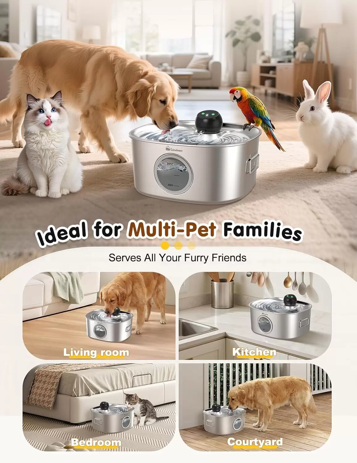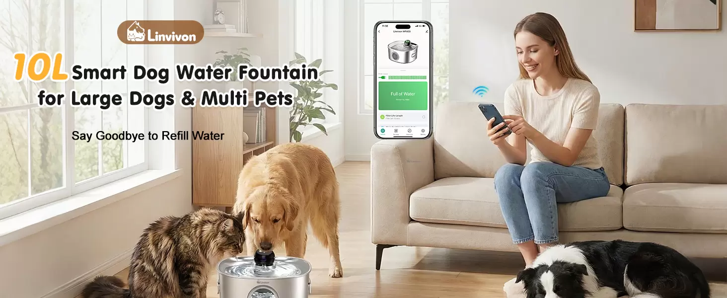Capacidad Familiar: Tanque de 10 Litros ideal para perros grandes o múltiples gatos, reduciendo la frecuencia de relleno.