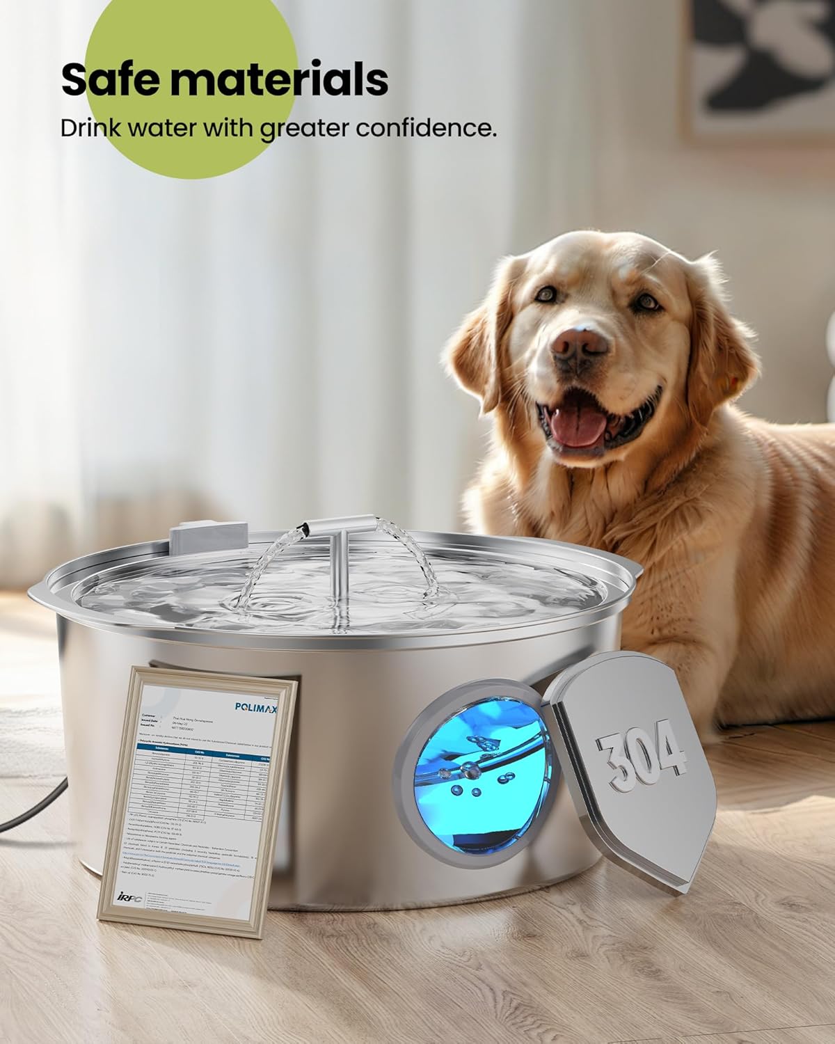 Materiales más seguros: la fuente de agua para mascotas hecha de acero inoxidable 304 no solo es duradera y fácil de limpiar, sino que también garantiza la seguridad del agua potable de la mascota. La fuente de agua para perros de acero inoxidable es más fácil de limpiar y mantener, lo que la hace menos estresante para nosotros y nos permite disfrutar de una experiencia de cuidado de mascotas más relajada.