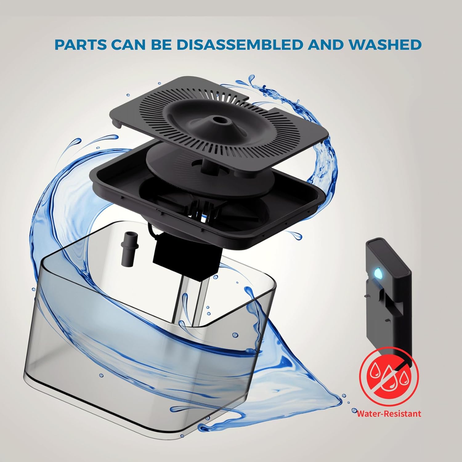 Limpieza y mantenimiento: el dispensador de 3 litros de capacidad está hecho de material de contacto respetuoso con el medio ambiente, evitando eficazmente la barbilla negra de los gatos. La placa de filtro está diseñada con esquinas redondeadas para evitar el reflujo de escala. La estructura simple es fácil de desmontar y montar, se puede sumergir en agua para la limpieza (la caja del sensor no debe lavarse). Se recomienda reemplazar las almohadillas de filtro una vez cada 15 días, y se recomienda limpiar la bomba de agua una vez cada 7 días.
