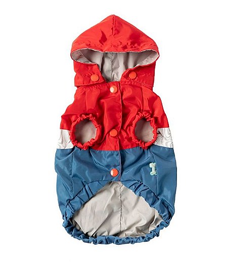 Impermeable Seattle de estilo vintage de FuzzYard. Perfecta para los días lluviosos, esta chaqueta sin mangas, ligera y resistente al agua, cuenta con botones a presión en el pecho para cerrarla y ponértela fácilmente, una capucha desmontable y un bolsillo con cremallera en la parte posterior.
