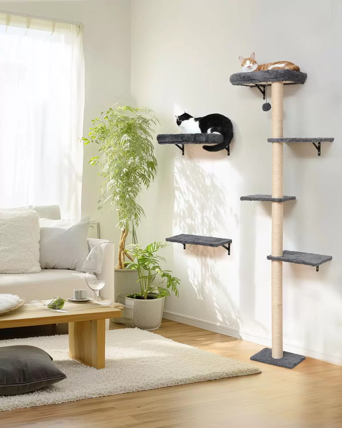 Ahorro de Espacio Vertical: Utiliza el espacio de las paredes, liberando el suelo de su casa o departamento. Es ideal para que los gatos gasten energia y corrijan el mal comportamiento, ademas de darles un refugio lejos de los perros.