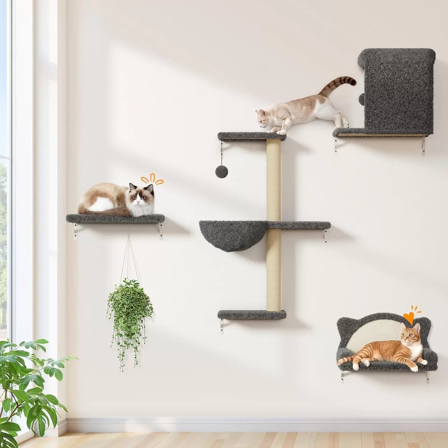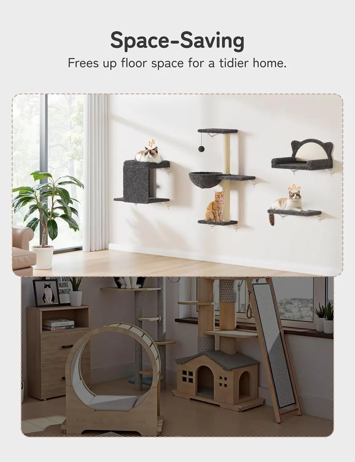 Gimnasio de Pared para Gatos Set 5 en 1: Casa de Dos Pisos, Cesta y Rascador