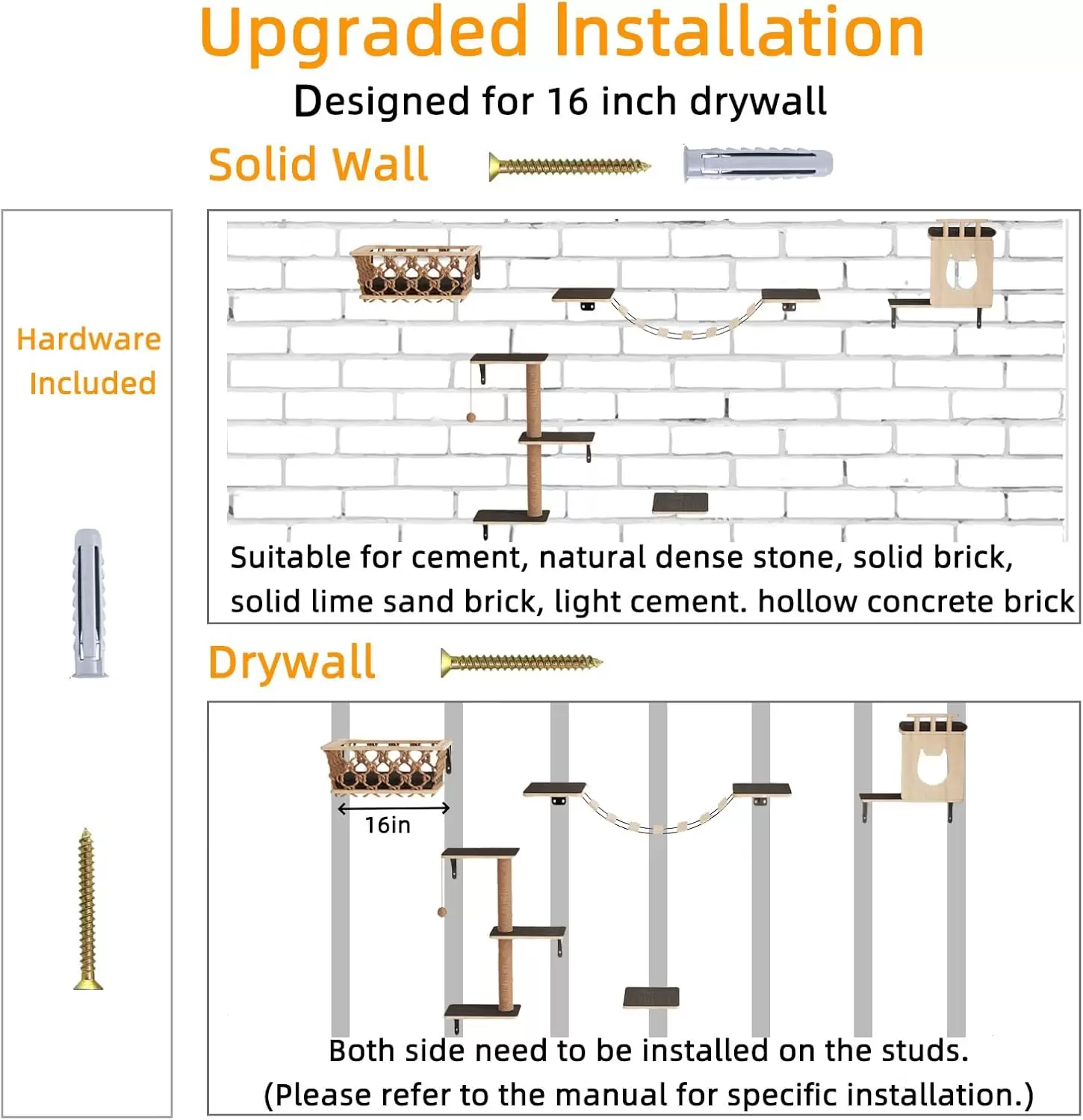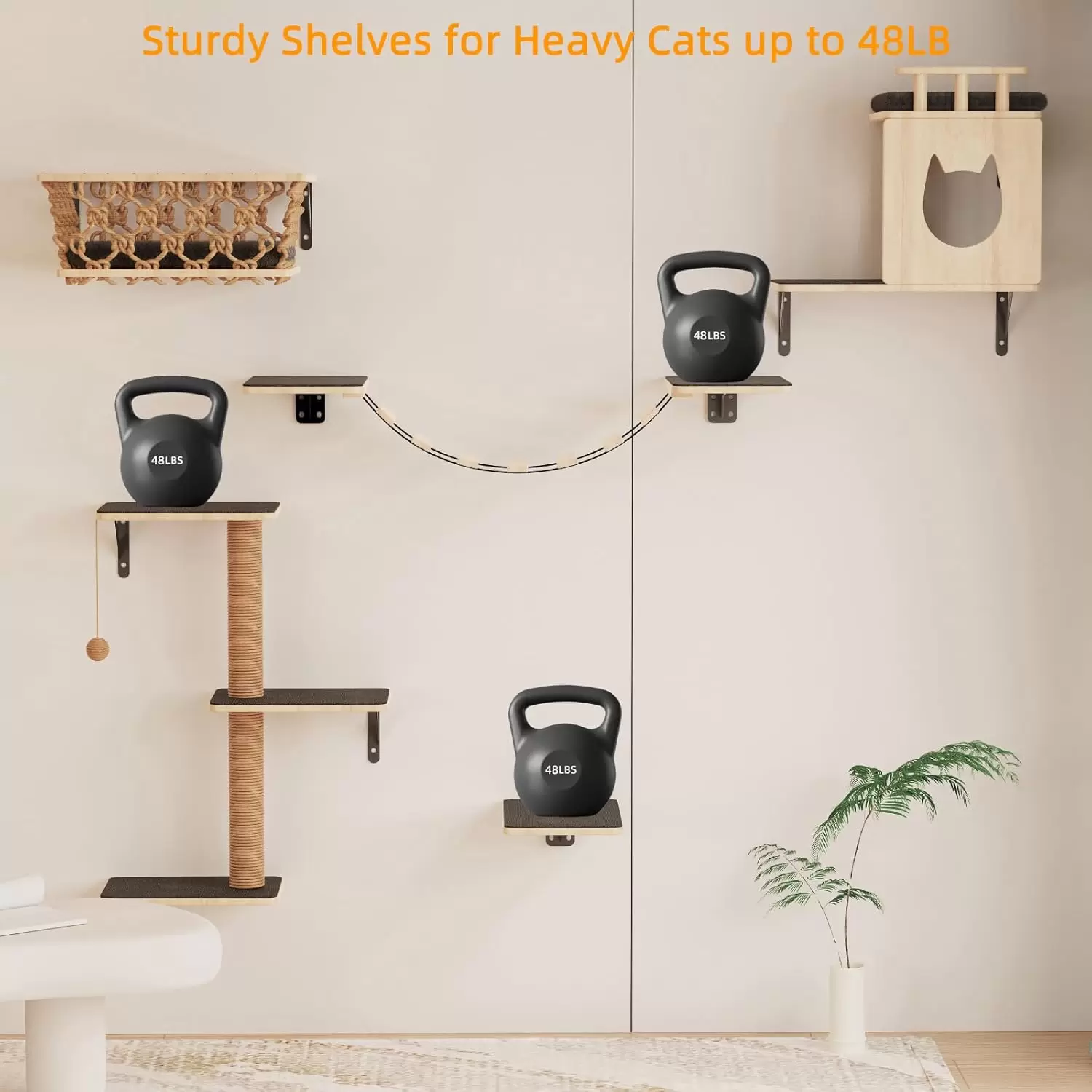 Set Completo 5 en 1 para Diversion Total: Este kit incluye 5 piezas esenciales para armar un gimnasio perfecto en su pared. Combina estantes de escalada y una cesta de descanso, creando un circuito dinamico que satisface todas las necesidades de movimiento y relax de su mascota en un solo producto.