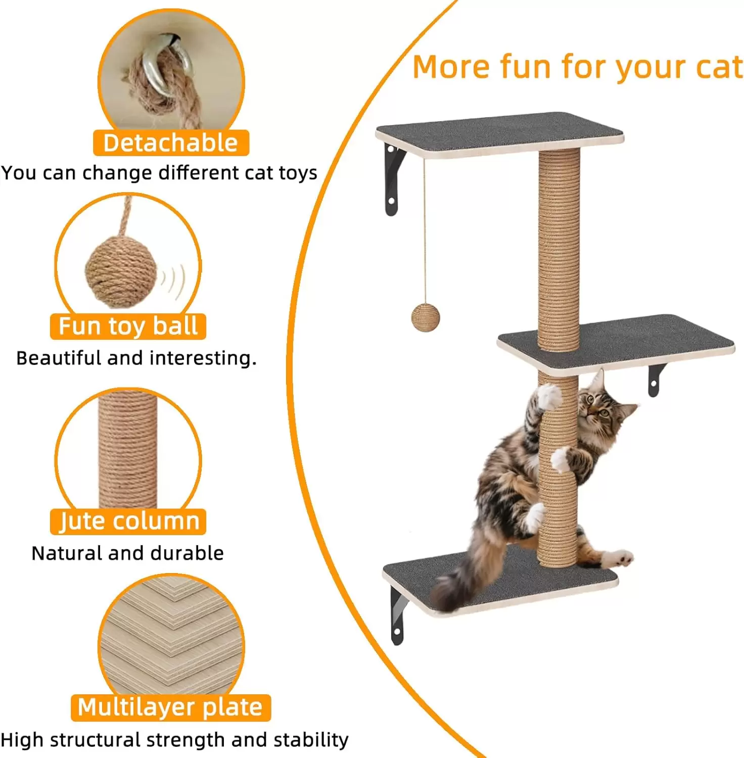 Solidez y Seguridad para Gatos Grandes: Fabricado con tableros de madera maciza multicapa y reforzado con soportes triangulares de acero. Esta construido para una estabilidad maxima. Cada estante soporta mas de 22 kilos (48 libras), lo que lo hace perfecto para razas grandes o para que varios gatos jueguen simultaneamente con total tranquilidad.