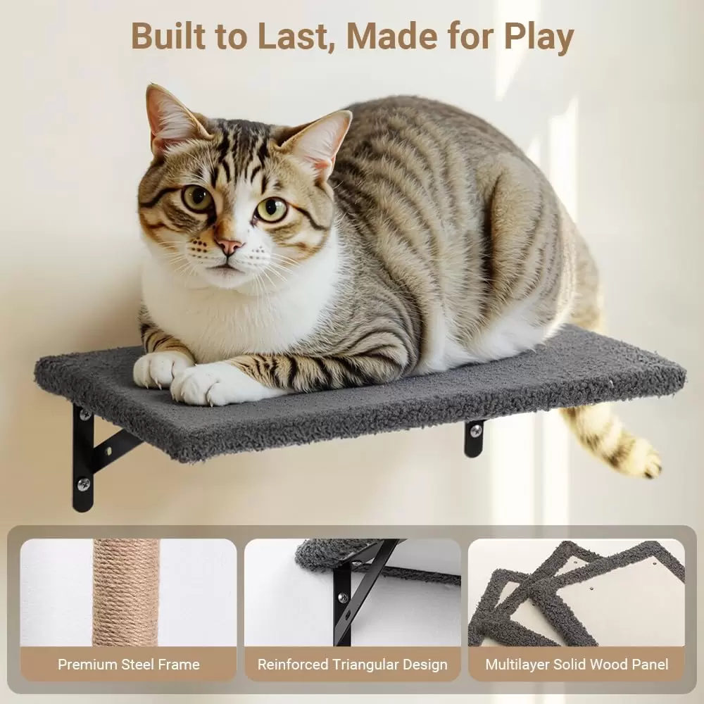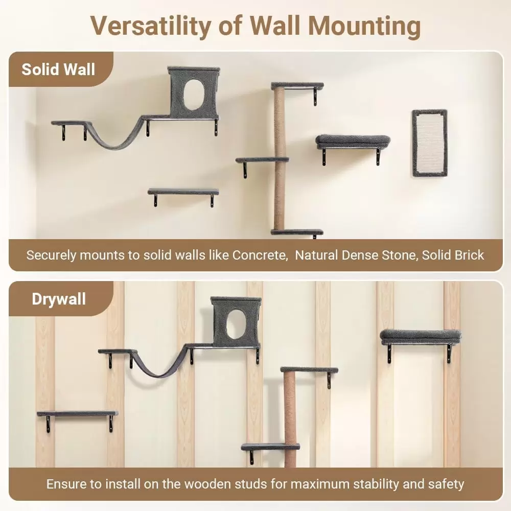 Instalacion Facil y Personalizable: Usted decide el diseño. Puede ajustar las alturas y la disposición de las piezas según su pared y el estilo de salto de su gato. El set incluye todos los accesorios e instrucciones claras para un montaje rápido y sin complicaciones, incluso para principiantes.