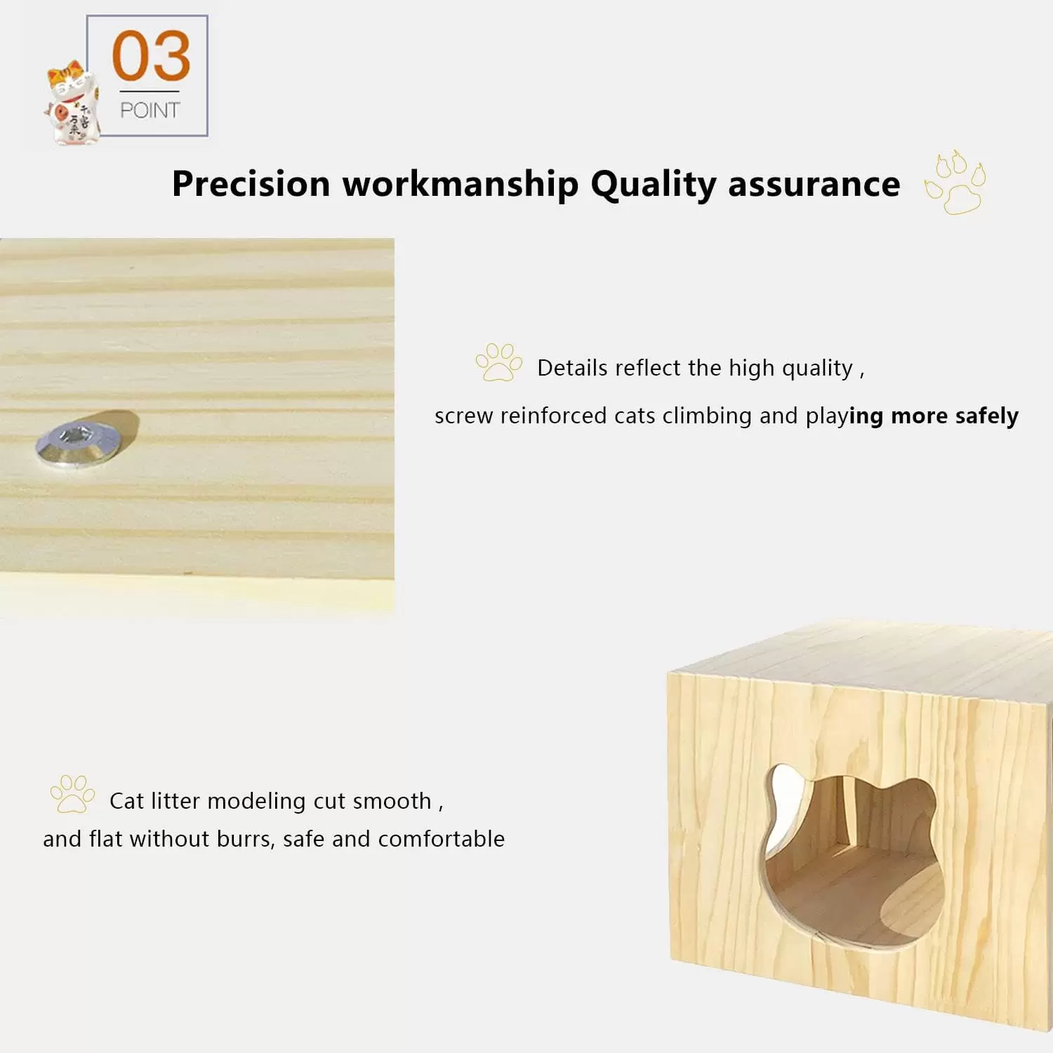 Gimnasio de Pared para Gatos Set 7 Piezas: Madera Pino, Casa y Rascador