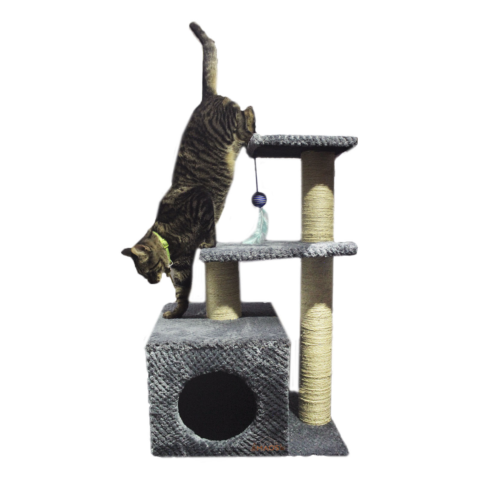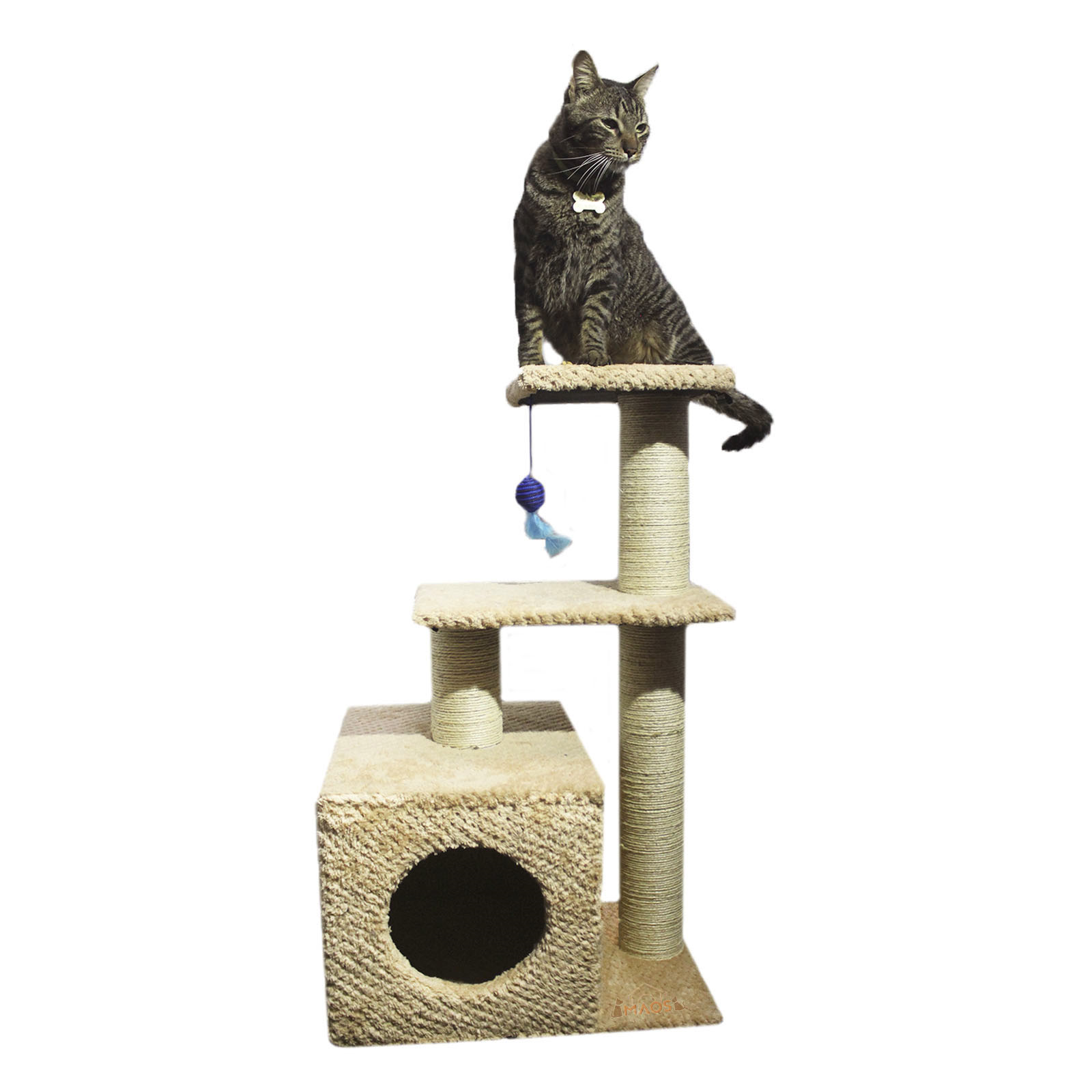 - Fique para los rascadores: Para los rascadores se emplea el material conocido como fique, este material no es tan rígido para que no lastime las uñas del gato, adicionalmente sus cualidades permiten una muy buena durabilidad.