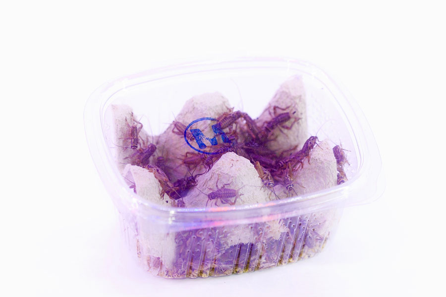 El Grillo Rubio Mediano puedes adquirirlo en tres formatos diferentes, en tarrinas y en cajas de dos tamaños. Con este tamaño, aún no tiene sus alas desarrolladas y no tiene capacidad para cantar.