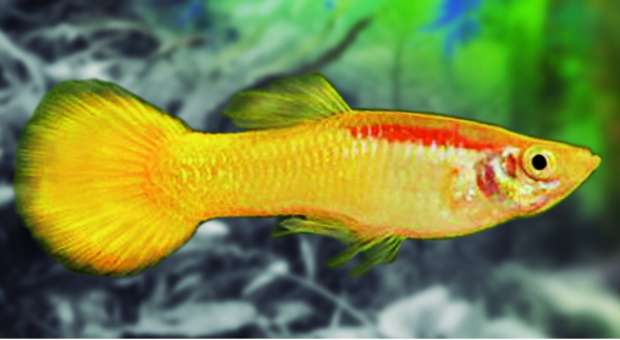 GUPPY DE CALIDAD PREMIUM DE TONOS AMARILLOS Y LINEA ROJA LASER
