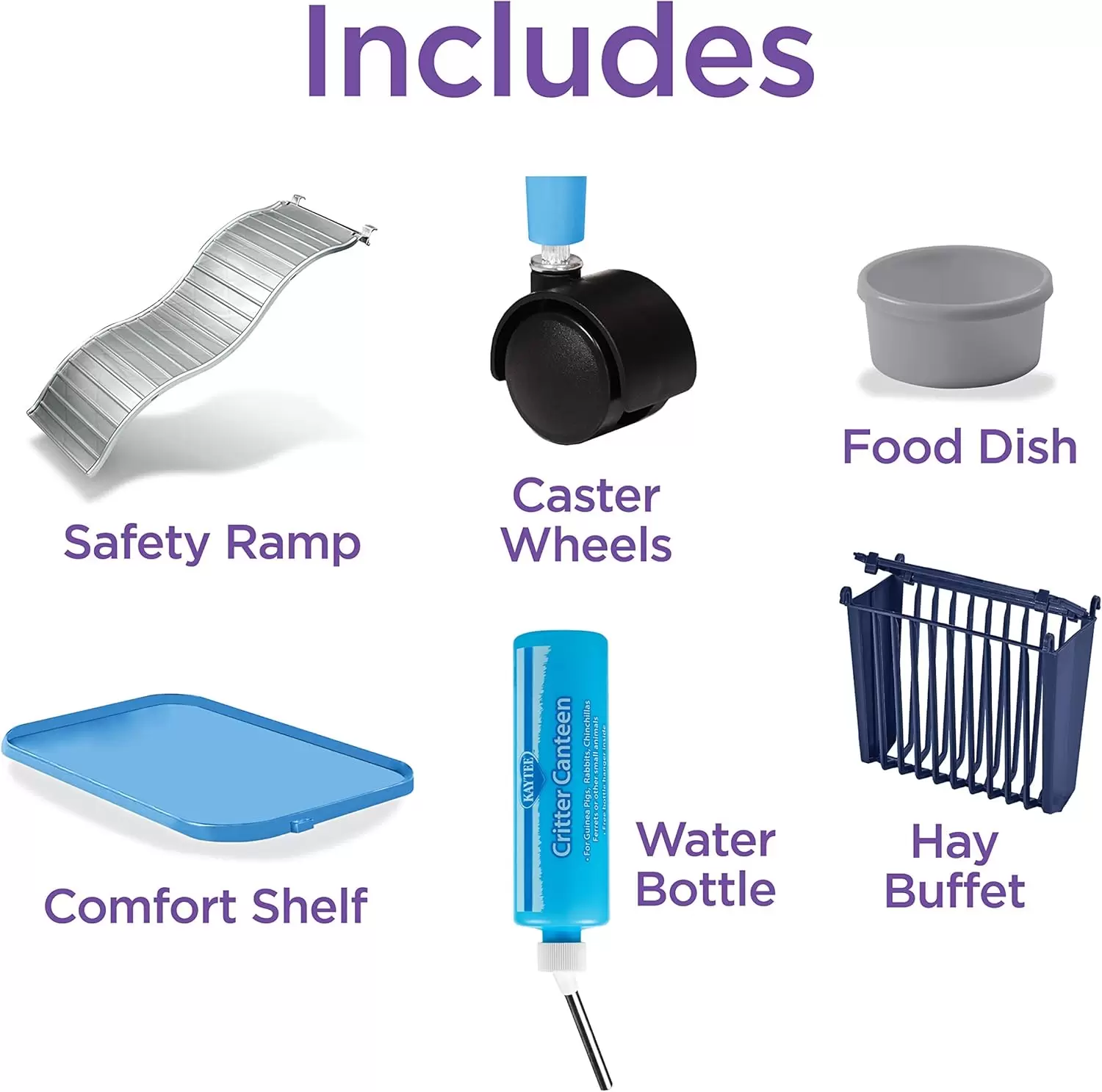 Este hábitat de lujo, diseñado específicamente para conejillos de Indias (cuyes) y conejos enanos, ofrece un espacio cómodo y funcional. Con dimensiones de , su estructura de plástico es fácil de limpiar y está pensada para uso en interiores.