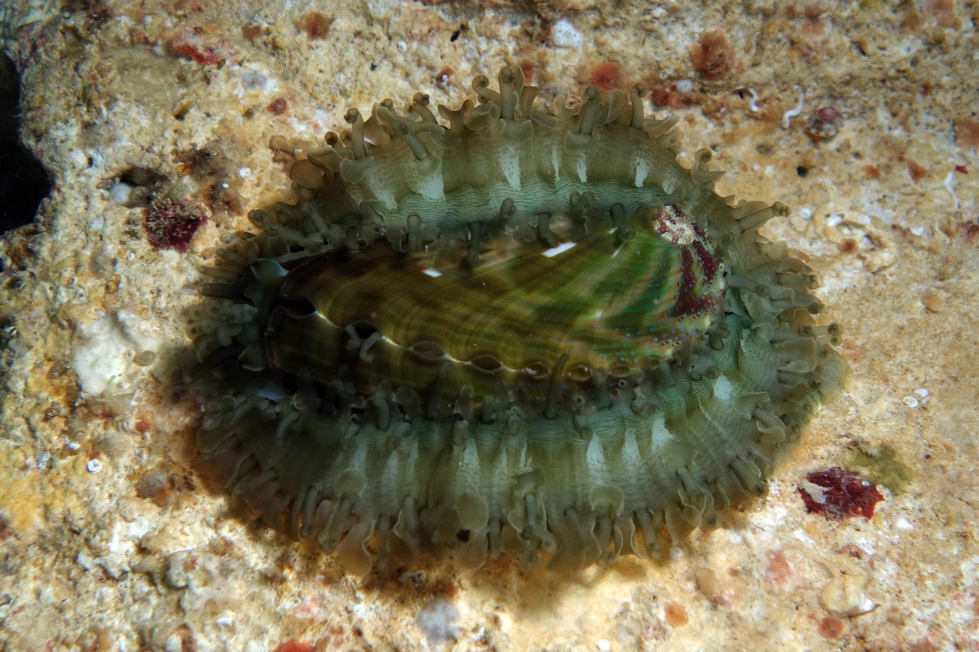 AUNQUE NO SEA UN CARACOL PROPIAMENTE DICHO, PERTENECE A LA FAMILIA DE LOS ABALONES( OREJAS DE MAR), ES UN INCANSABLE COMEDOR DE ALGAS,A PESAR DE SU PRECIO SE BUSCA POR LA EFICACIA. NOS RECORDARA MAS A UN NUDIBRANQUIO, NO QUEDA A LA VISTA SU CONCHA.