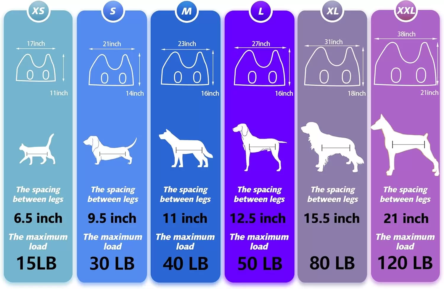 Elige el tamaño correcto: antes de comprar, lee la tabla de tallas y mide el espacio entre las patas delanteras y traseras de tu mascota. Si tiene alguna pregunta adicional, no dude en ponerse en contacto con nosotros.