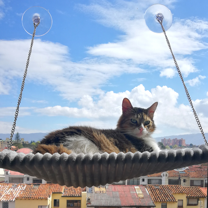 Hamaca para fijar en la ventana perfecta para crear espacios verticales y darle una cama cómoda a tu gatito, desde dónde ventanear.