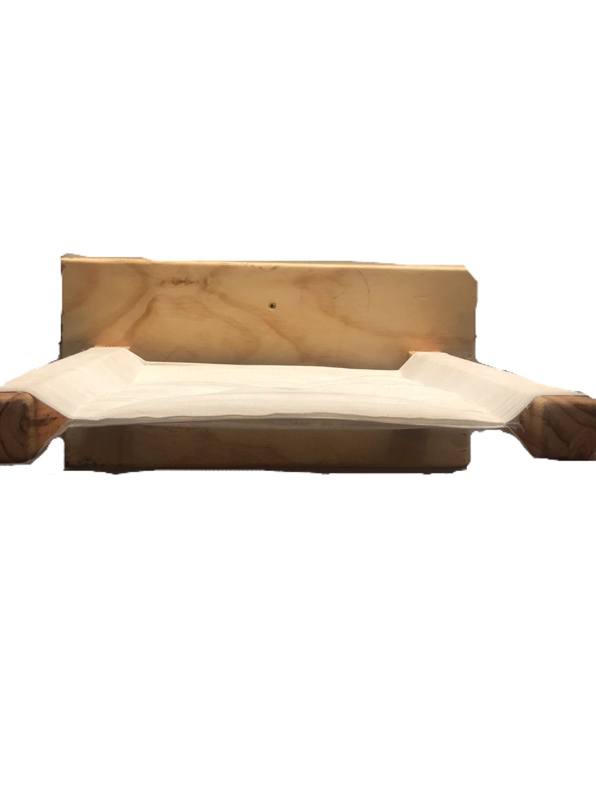 Hamaca en tela para instalación en paredes, ideal para el descanso de nuestros michis.