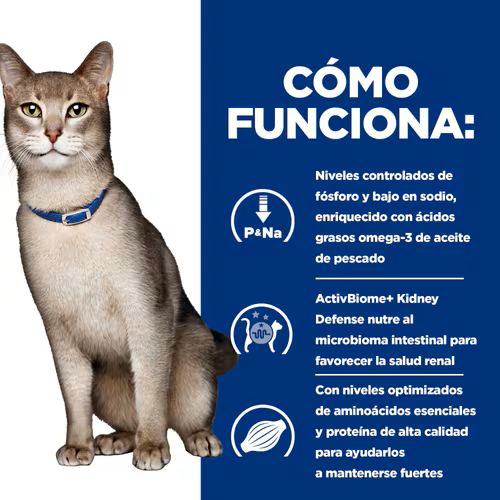Cuando los gatos tienen daños en los tejidos renales, los riñones no pueden funcionar tan bien como antes. La afección no es reversible, pero la progresión puede ralentizarse. Los alimentos dietéticos para los problemas renales están diseñados para ayudar a reducir la carga de trabajo de los riñones, permitiéndoles funcionar con mayor eficacia. Los gatos con una función renal disminuida pueden experimentar una pérdida de apetito y su consumo de alimento podría disminuir.