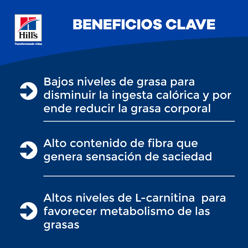 Hill’s Prescription Diet r/d con pollo está pensado para una alimentación intermitente y no se recomienda para una alimentación a largo plazo (más de 6 meses). Consulta a tu veterinario para obtener más información sobre cómo nuestros alimentos Prescription Diet pueden ayudar a tu mascota a seguir disfrutando de una vida feliz y activa.