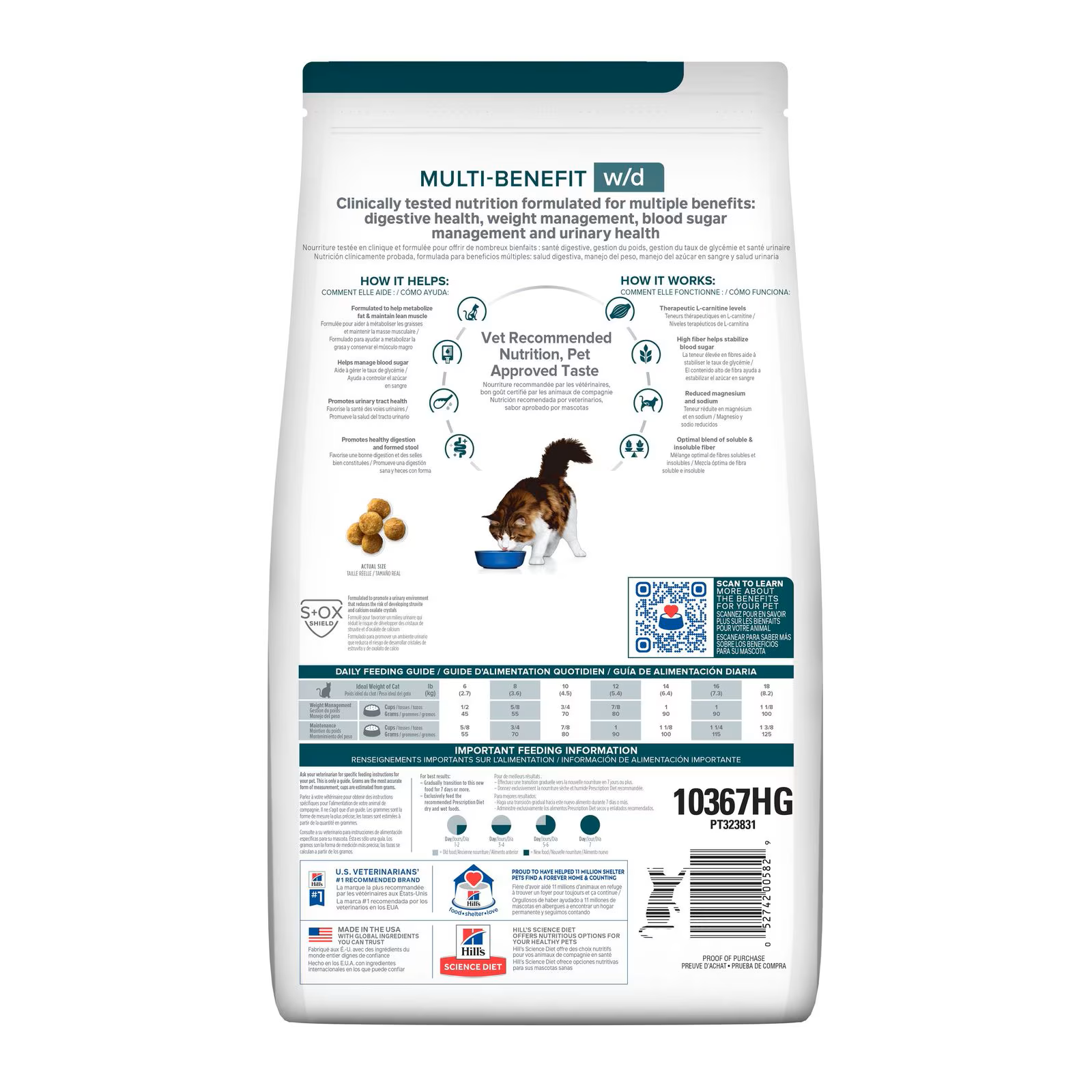 Hill’s Prescription Diet w/d Multi-Benefit está formulado exclusivamente para beneficiar a su mascota en múltiples niveles: salud urinaria, salud digestiva, control del azúcar en la sangre y control del peso. Esta mezcla de nutrientes balanceados y fibras solubles e insolubles funciona en múltiples frentes para que tu mascota viva su mejor vida.