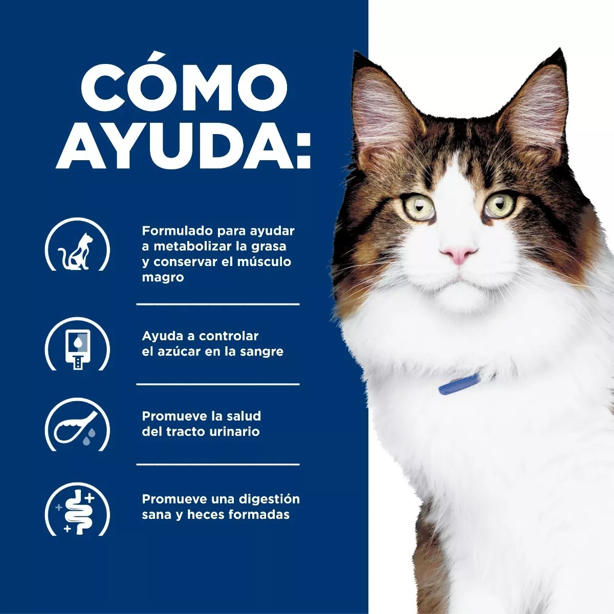 Hill’s Prescription Diet w/d Multi-Benefit es un alimento seco completo y equilibrado que aporta toda la nutrición que tu gato necesita. Consulte a su veterinario para obtener más información sobre cómo nuestros alimentos Prescription Diet pueden ayudar a su gato a seguir disfrutando de una vida feliz y activa.