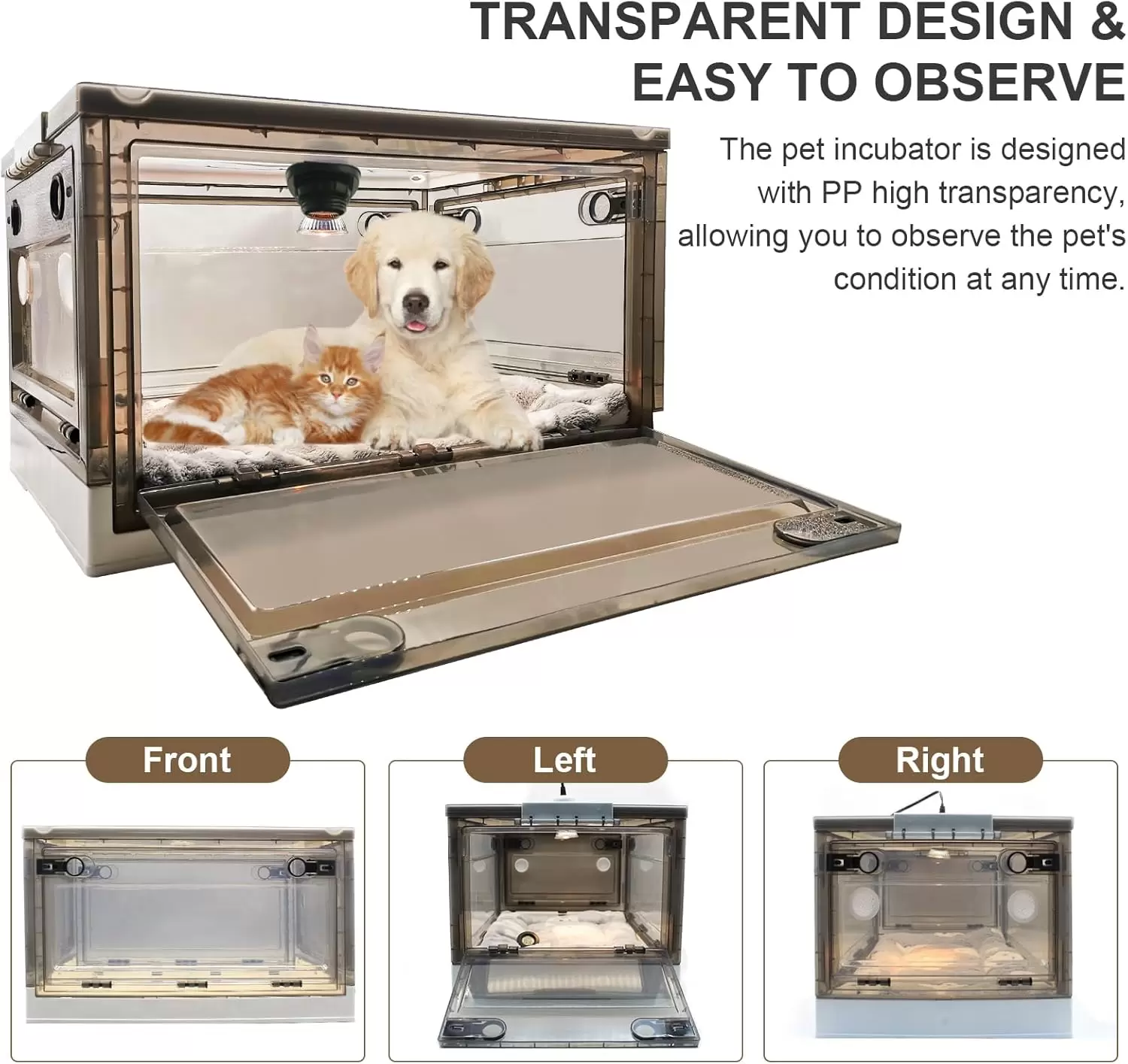 Conveniente y ahorra espacio: con su gran capacidad de 55 litros y diseño plegable, el gran espacio y el diseño transparente te permiten observar la situación de la mascota en cualquier momento. Esta incubadora ecológica es una solución conveniente y que ahorra espacio para criadores, refugios de animales y dueños de mascotas. Puedes guardarlo fácilmente cuando no esté en uso y configurarlo rápidamente cuando lo necesites.