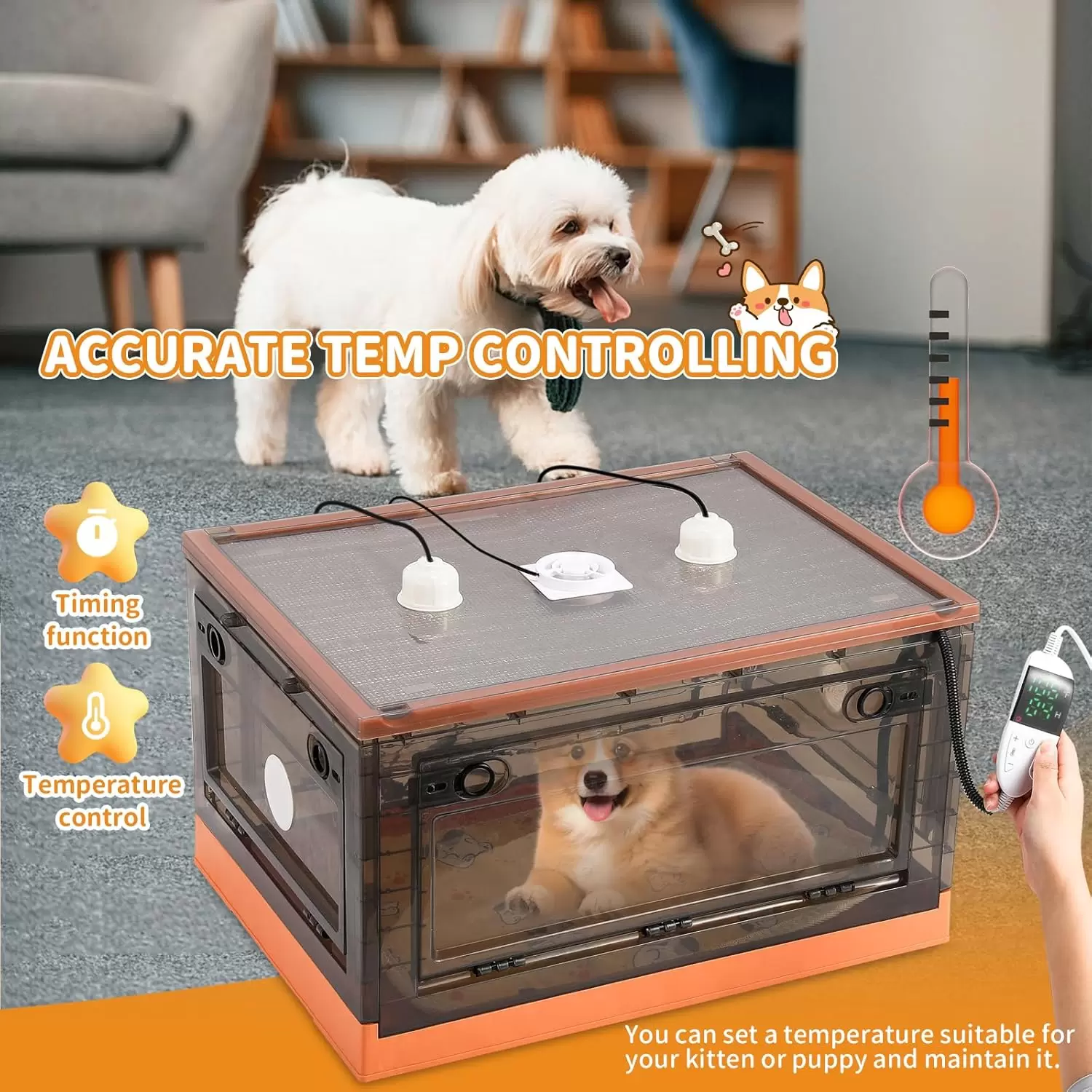 Control preciso de temperatura: una almohadilla térmica con temporizador y pantalla de temperatura y 2 lámparas de calor de 50 W permiten al usuario regular con precisión la temperatura. No hay necesidad de preocuparse por que tu mascota se enfríe cuando no estás en casa.