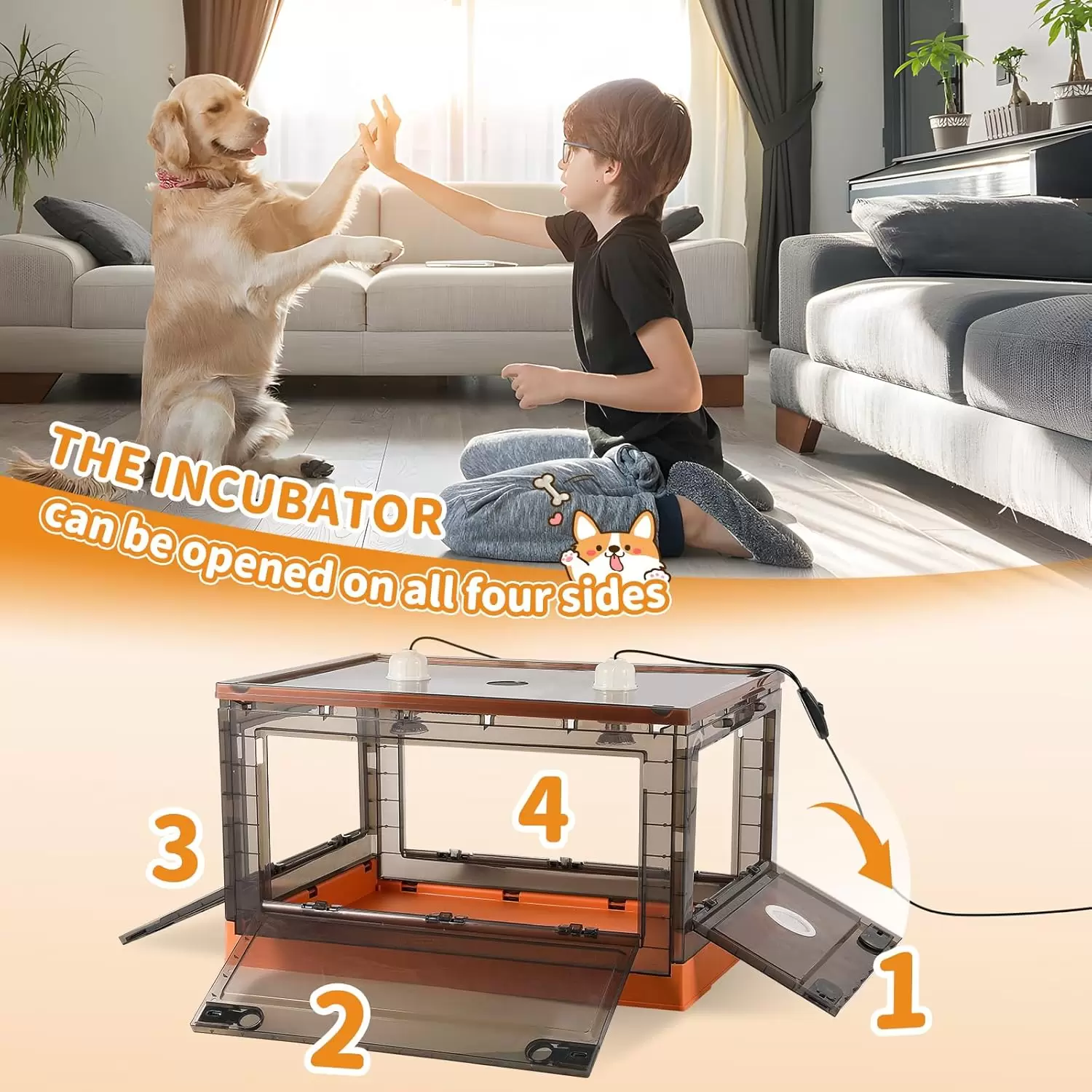 Incubadora para Perros y Gatitos | Calefacción y Diseño Aislado (Tamaño Grande)