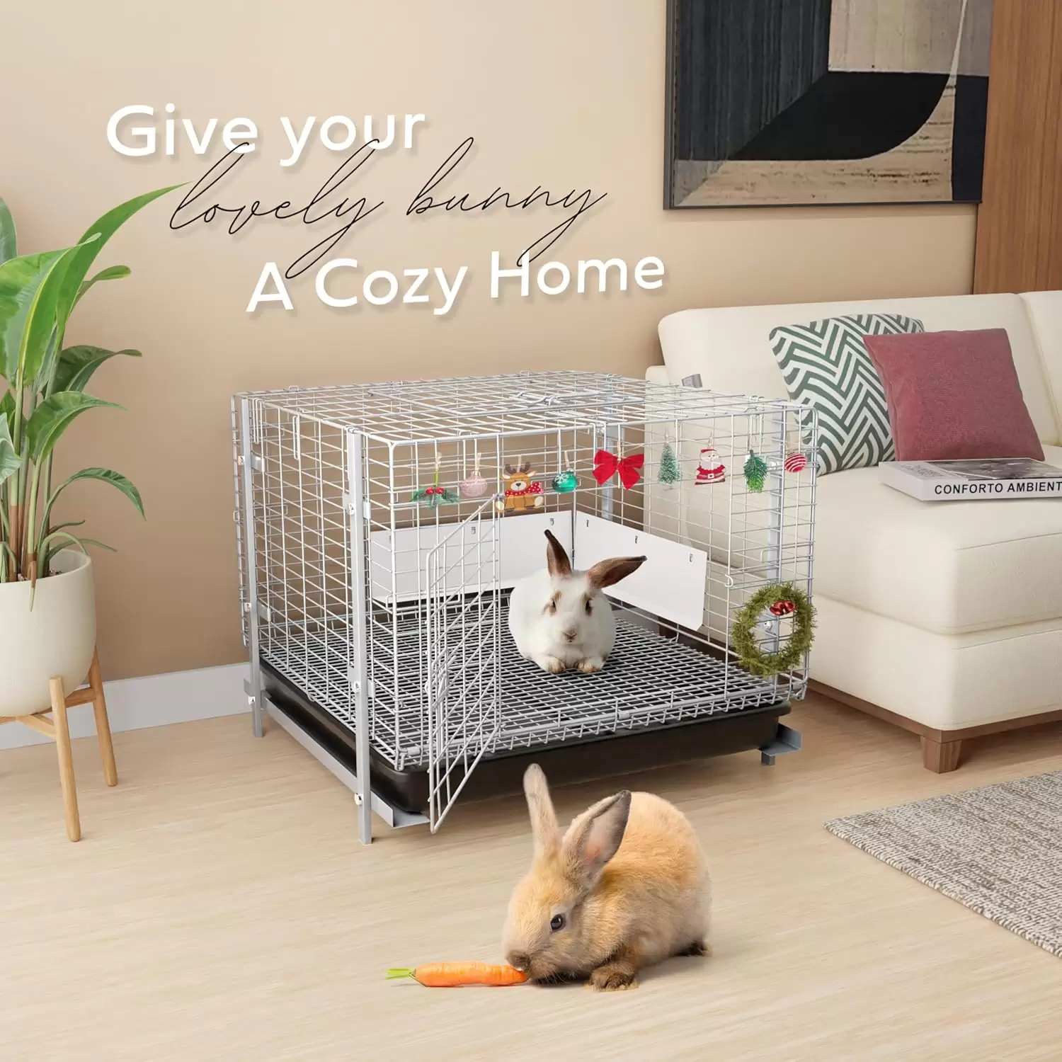 Con generosas dimensiones de , esta espaciosa casa ofrece suficiente espacio para que sus conejos, hurones o erizos puedan jugar y descansar cómodamente.