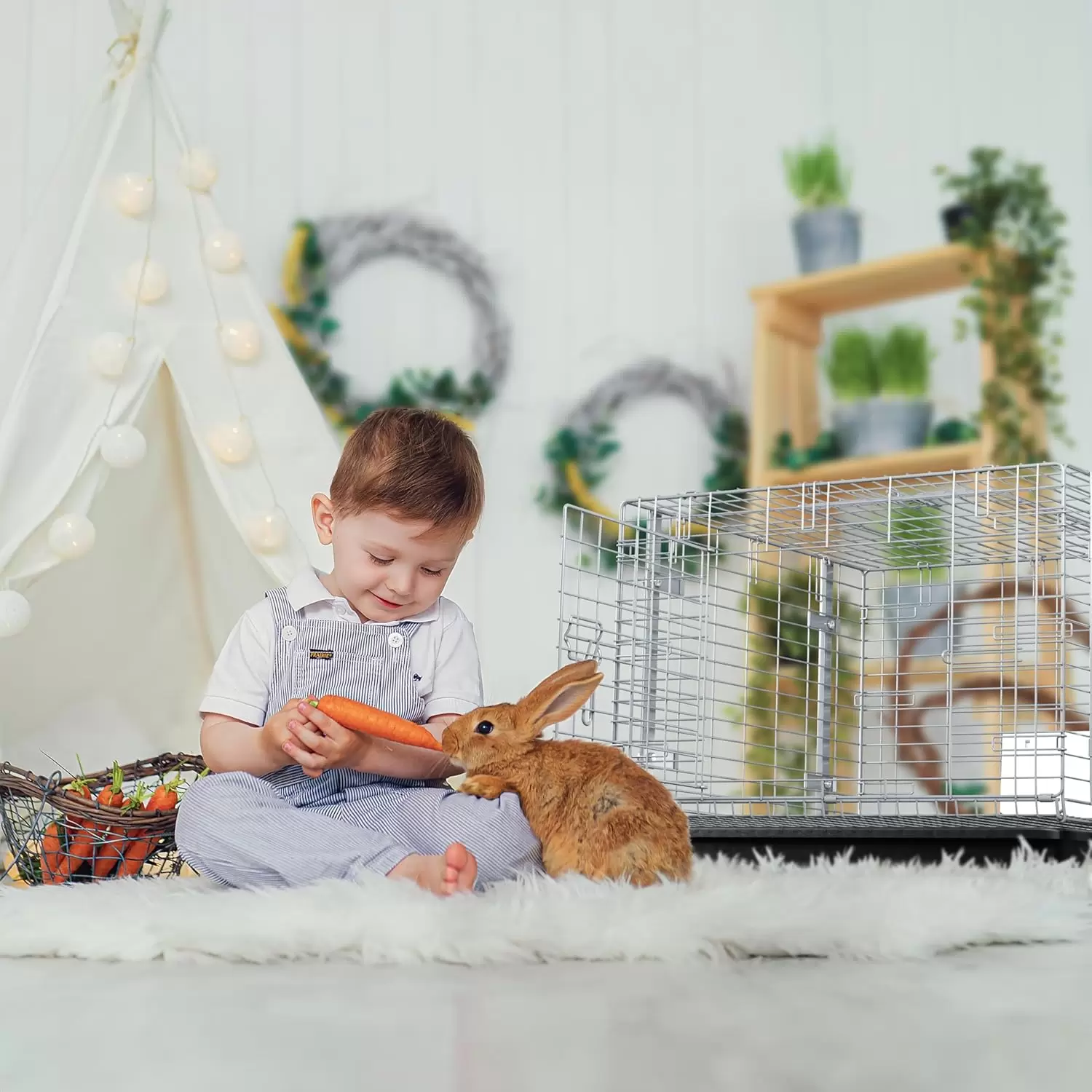 Jaula Corral Apilable para Conejos, Hurones y Erizos | 61×61×52 cm | Bandeja Extraíble y Anti-Orina