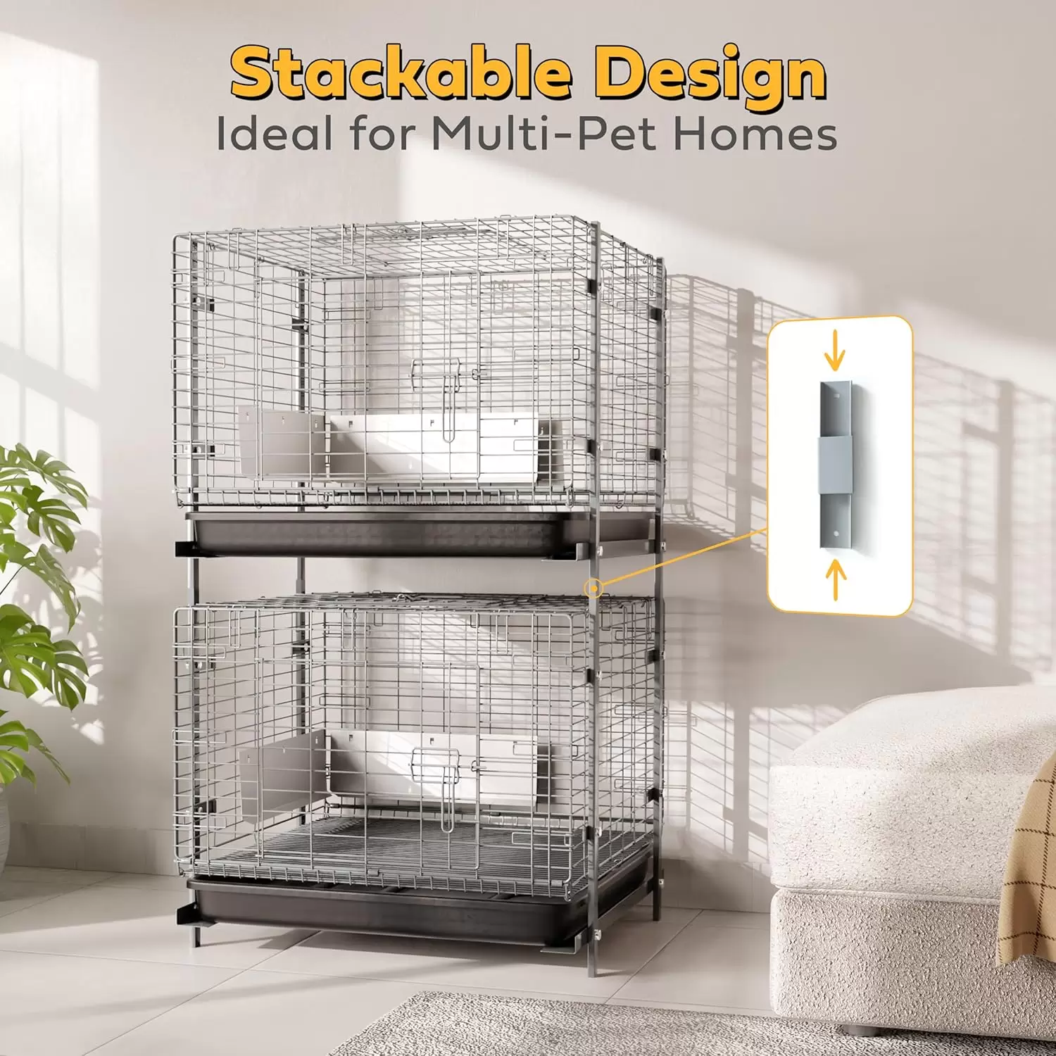 Ahorro de Espacio: El diseño es fácil de montar y, lo más importante, apilable. Puede adquirir varias unidades y apilarlas de forma segura, convirtiéndolo en la solución ideal para dueños de múltiples mascotas que necesitan optimizar el espacio.