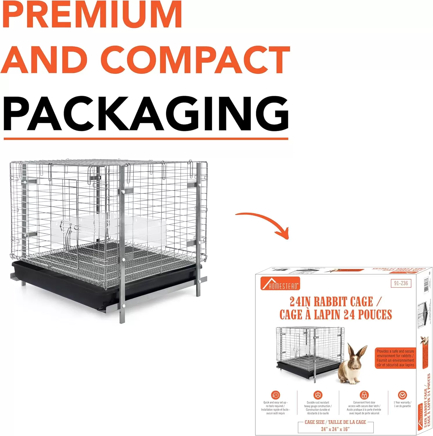 Jaula de apilable para conejos/hurones. Bandeja extraíble con protector anti-orina y doble puerta. Fácil de armar y duradera.