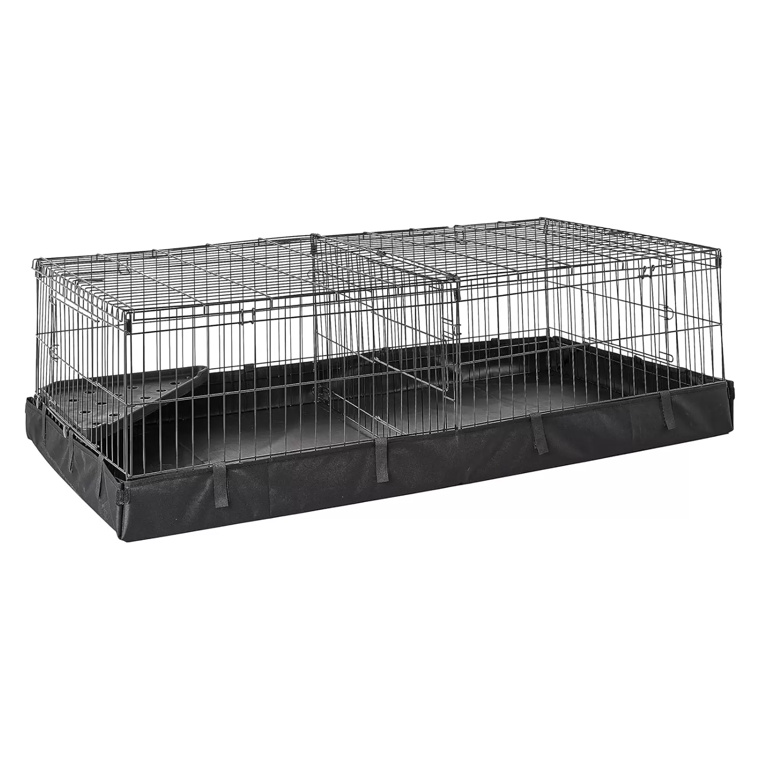 Jaula modular con divisor de ambientes para roedores. Base de lona texturizada anti-fugas. Ideal para cuyes y conejos. Fácil armado y desarme sin herramientas.