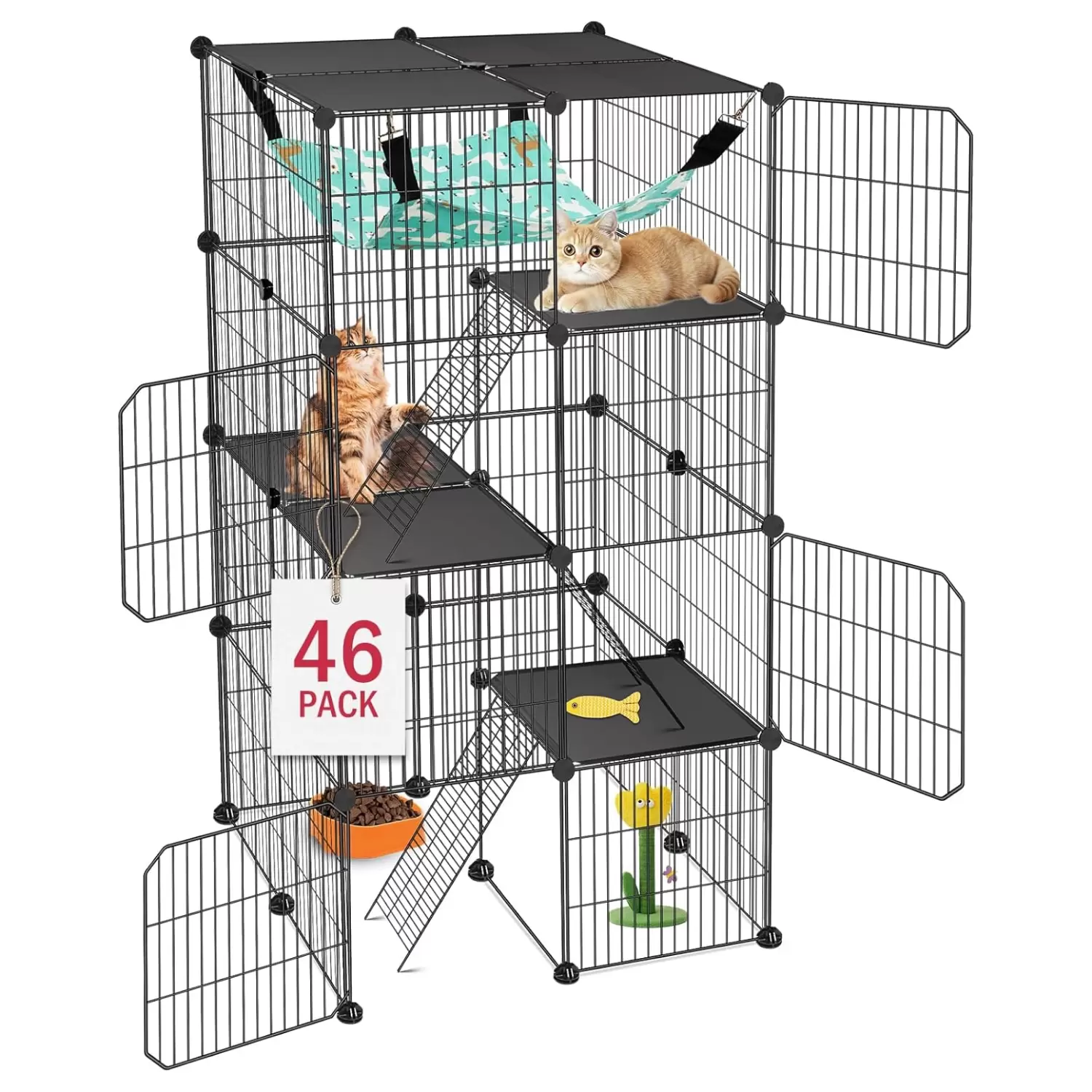 Jaula Corral Modular para Gatos XL (61x61x122 cm) | 4 Niveles, Interior/Exterior y Resistente