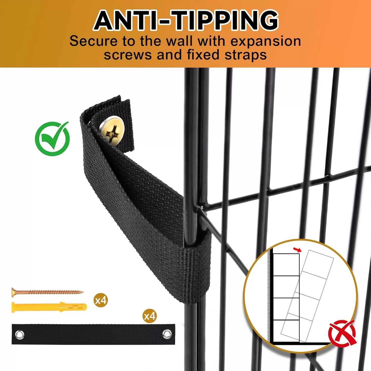 Resistente y duradero: con un diseño único antivuelco, asegura el recinto interior para gatos a la pared con tornillos de expansión y correas fijas. Hechas de alambre de acero duradero resistente al óxido, las jaulas para gatos vienen con cerraduras de puerta y conectores mejorados, mientras que las bridas incluidas aumentan la estabilidad y durabilidad de la jaula para gatitos.