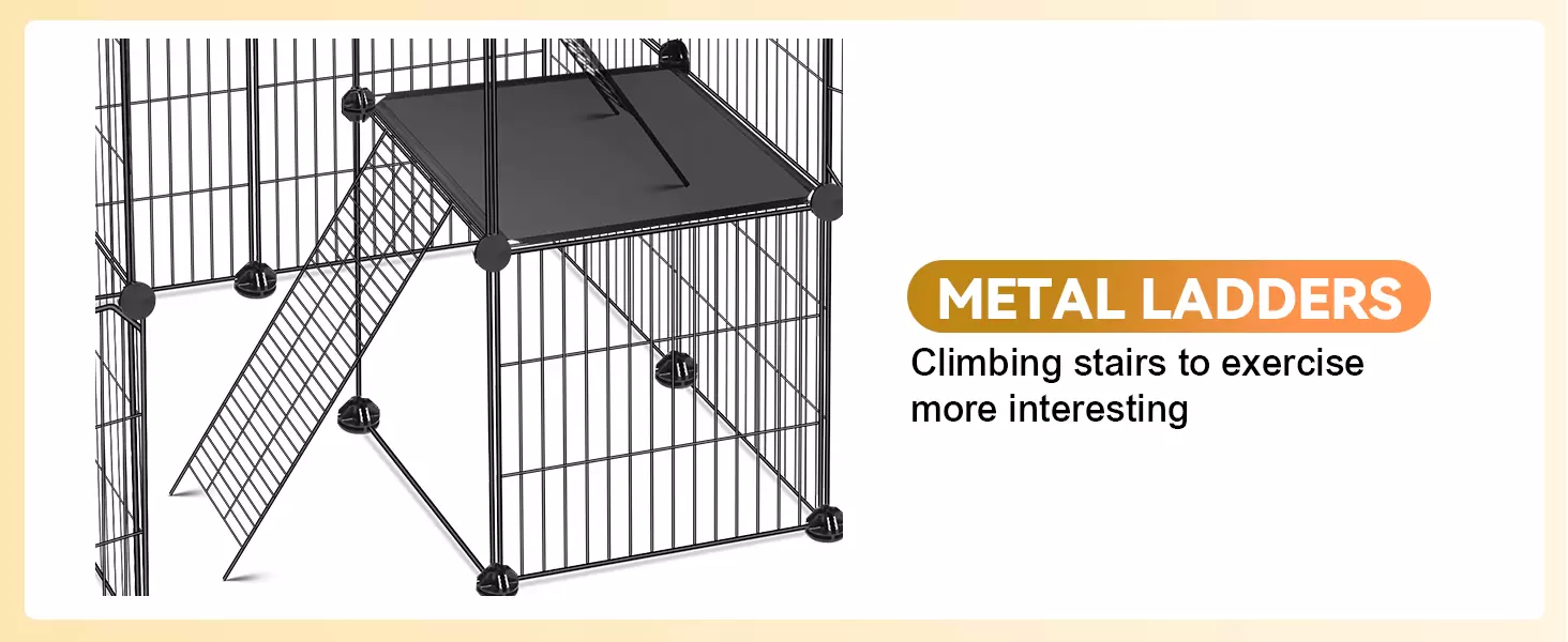 Plataforma y rampa seguras: las plataformas conectadas por rampas permiten que tus pequeñas mascotas escalen y exploren de forma segura. Este corralito de 4 niveles para gatos de interior adjunto proporciona a los gatos o gatitos un ambiente seguro y estimulante para jugar y descansar.
