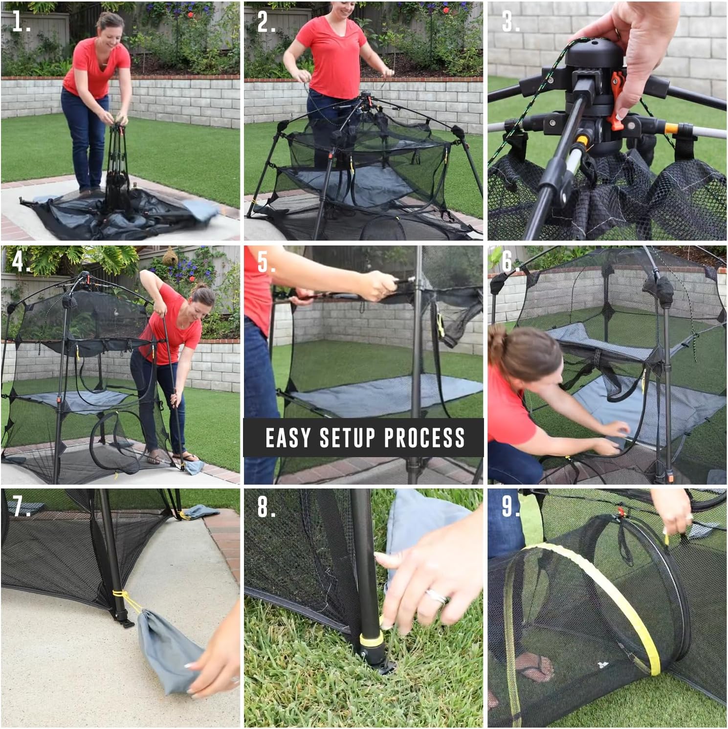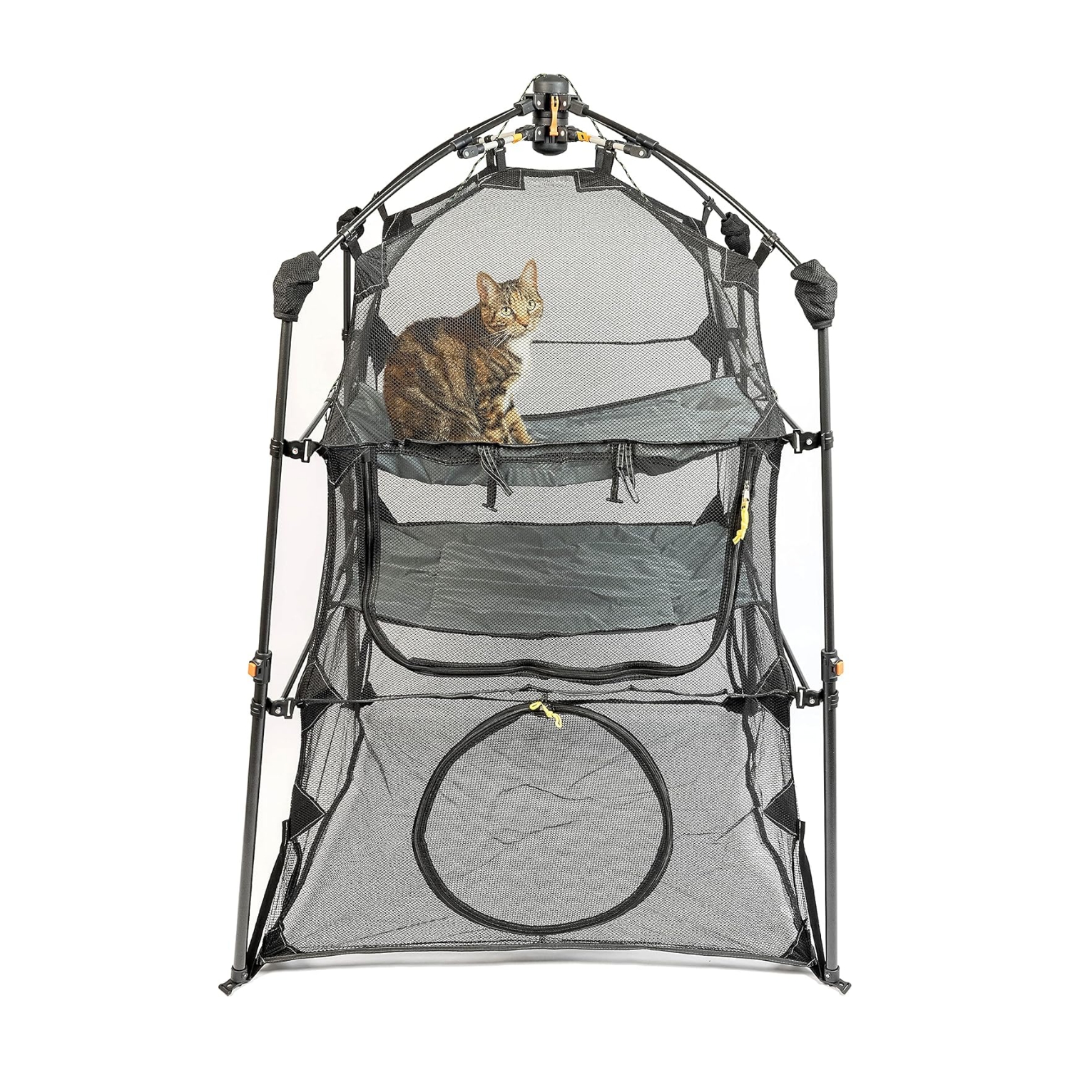 Portátil y de fácil instalación: diseño portátil y ligero que hace que transportar tus cercas exteriores para gatos sea simple. Diseño compacto que se pliega fácilmente en una práctica bolsa de transporte para viajes, almacenamiento y comodidad.