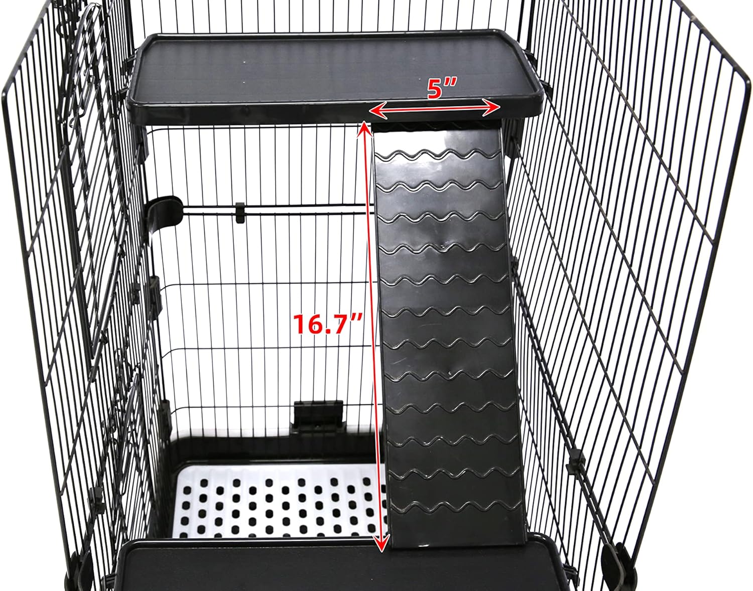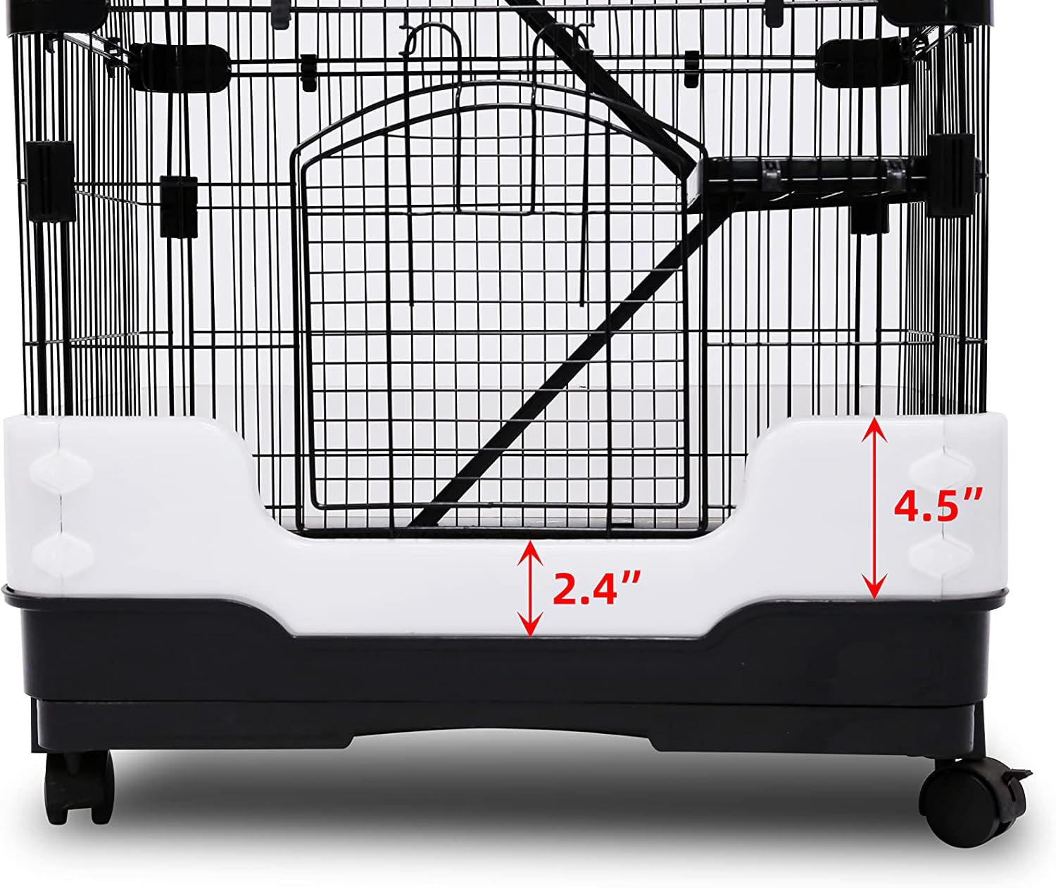 | Componentes incluidos | Protector de orina y base profunda, Ruedas giratorias con cerradura, Bandeja extraíble y rejillas de piso, Escaleras y plataformas antideslizantes, Ruedas Giratorias Bloqueables, Jaula, Clips |