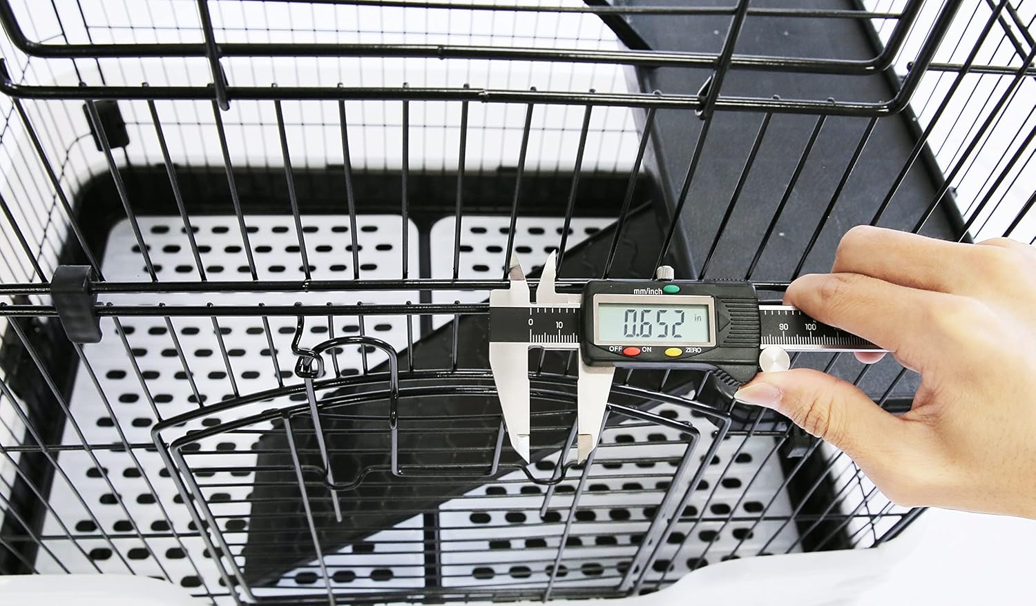 Tamaño: 25 pulgadas de largo x 17 pulgadas de ancho x 38 pulgadas de alto, espacio entre barras: 0.7 pulgadas, color: negro