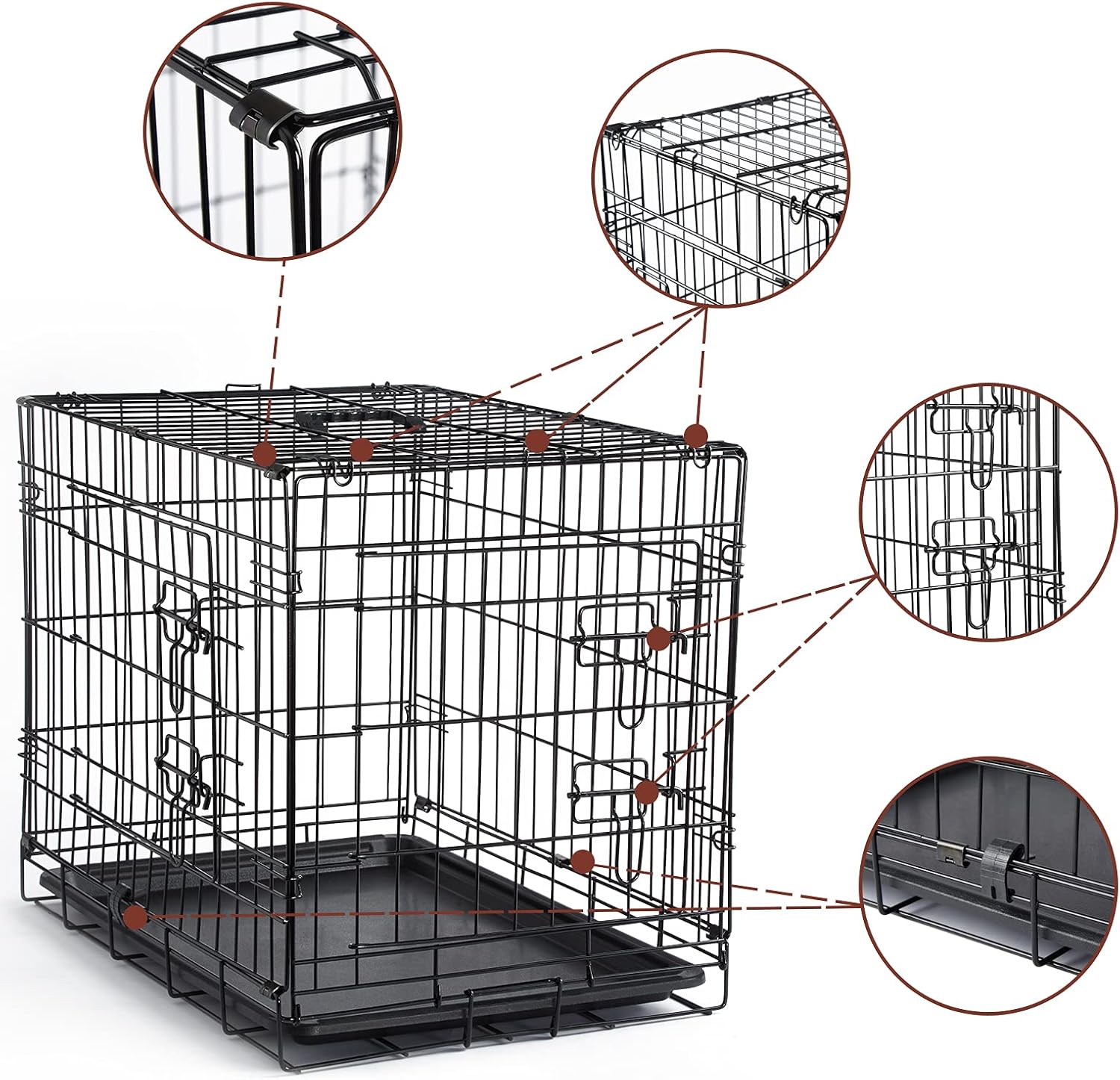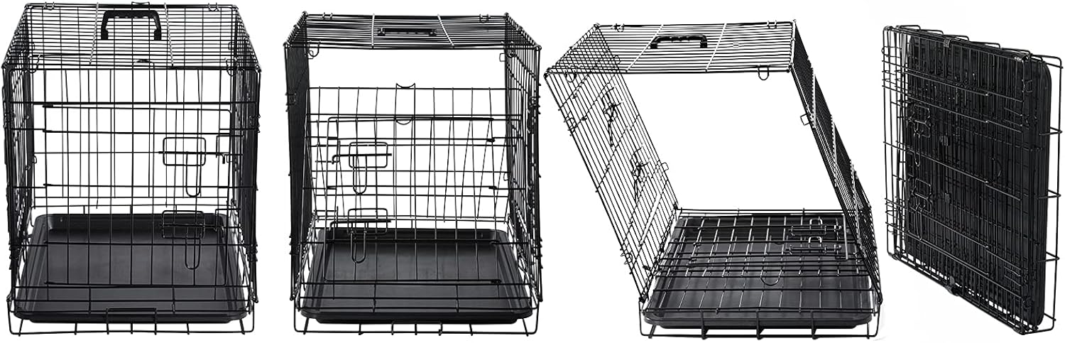 Construcción segura y segura: la perrera de dos puertas está fabricada con alambre de metal duradero. Cada puerta tiene 2 cierres de perno deslizante resistentes que bloquean de forma segura la puerta de la jaula del perro en su lugar, manteniendo a tu perro seguro dentro de su espacio.