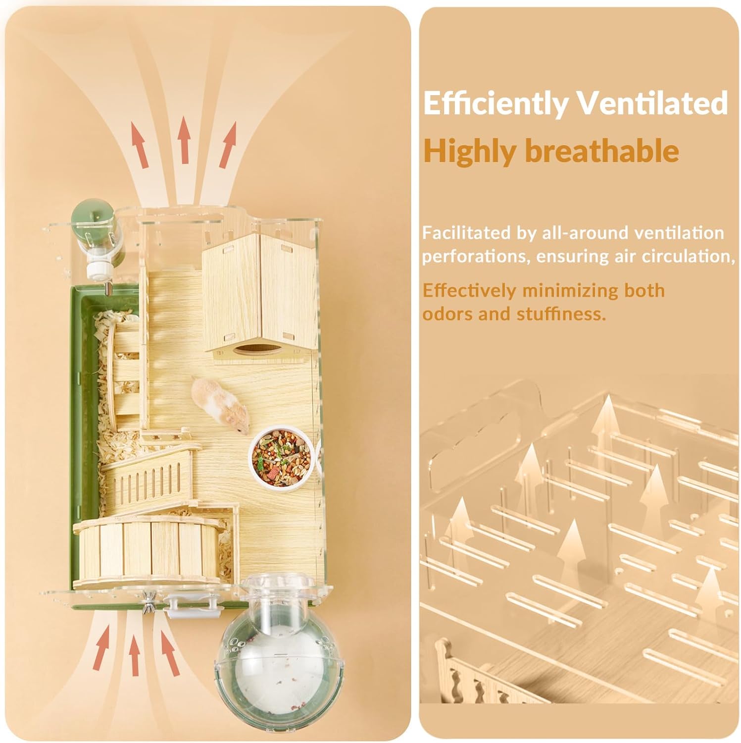 Carcasa transparente para hámster: la carcasa exterior de esta jaula para hámster (recinto para hámsteres) está hecha de acrílico de alta transparencia, lo que te permite observar cada movimiento del animal pequeño desde todos los ángulos. Además, este material es más duradero y fácil de limpiar, proporcionando comodidad y longevidad.