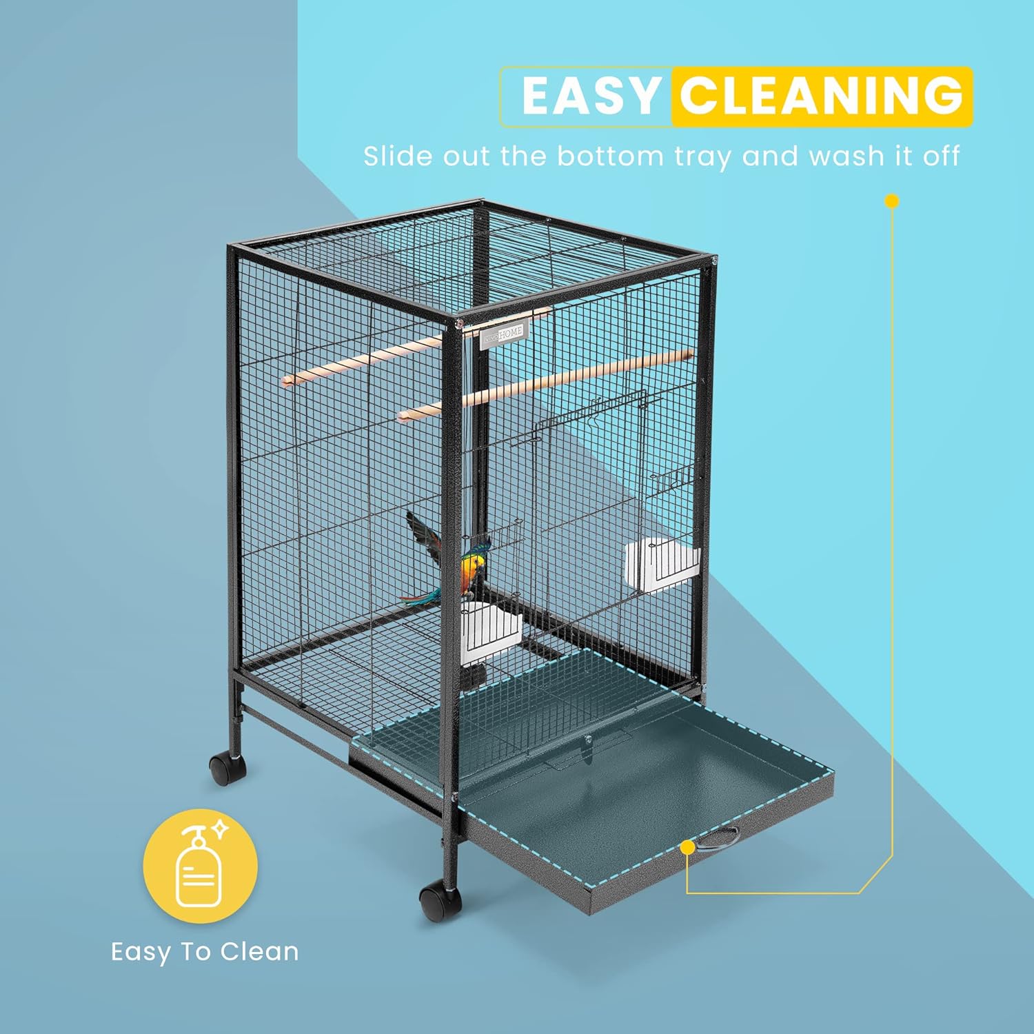 Fácil limpieza: para limpiar la parte inferior de esta jaula para pájaros, todo lo que necesitas hacer es deslizar la bandeja inferior y lavarla. Además, todos los estantes se pueden quitar fácilmente para una fácil limpieza; mantén un entorno limpio y ordenado y mantén a tus mascotas seguras