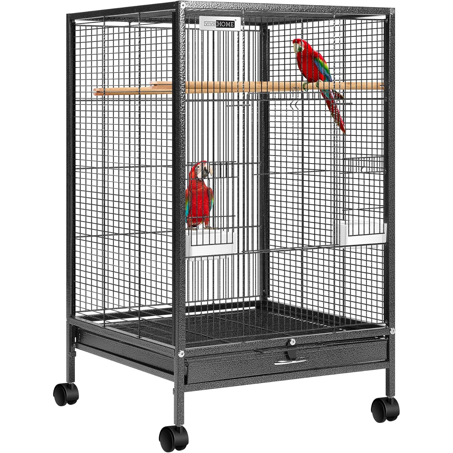 Marco resistente: esta gran jaula para pájaros está hecha de acero de alta calidad, bajo en carbono, inoxidable y resistente al agua, con calidad y durabilidad garantizadas; esta jaula está cubierta con pintura de patrón de martillo no tóxico, dando a los pájaros un entorno de vida más saludable y seguro; el marco de acero es más estable, con cuatro ruedas giratorias en la parte inferior, para que puedas moverla donde quieras, ahorrándote esfuerzo; la jaula tiene un diseño perfecto antiescape y un cierre que es firme y seguro