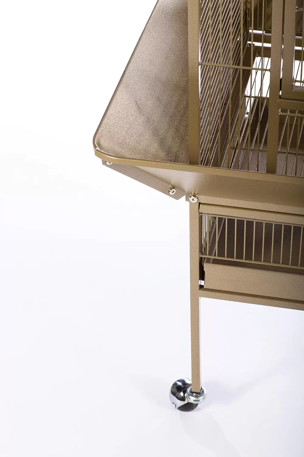 Jaula de hierro forjado de 49 pulgadas. El diseño de calidad a un precio asequible. Incluye percha y tazas de acero inoxidable. Ideal para periquitos y canarios.