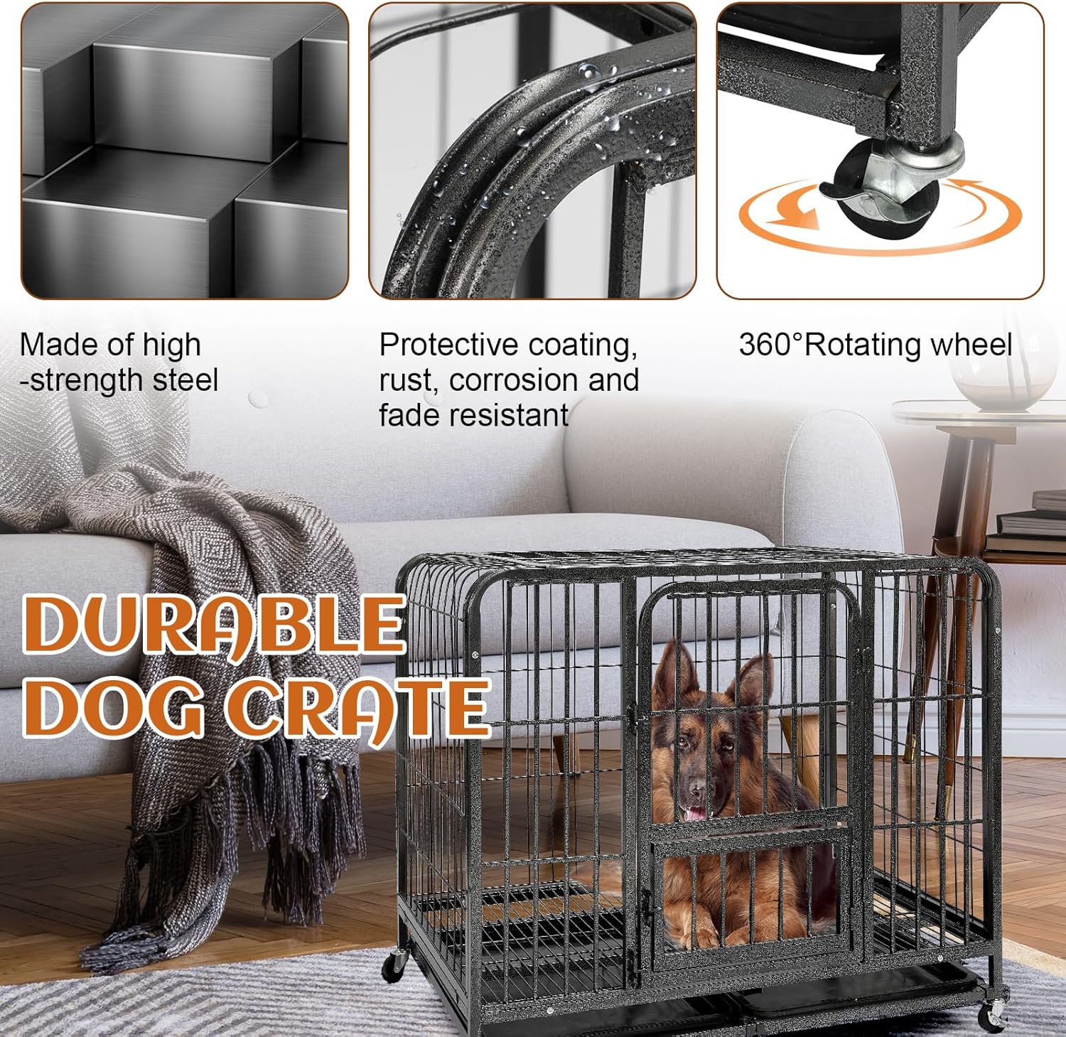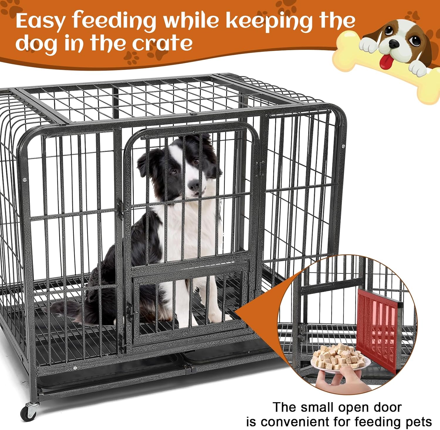 Diseño seguro y práctico: la puerta delantera de la jaula para perros es fácil para que las mascotas entren y salgan, la puerta principal tiene una pequeña puerta que hace que sea fácil alimentar a su mascota mientras mantiene a su mascota dentro de la caja, y la puerta superior se puede abrir para que sea fácil para usted interactuar con su mascota. Dos cerraduras de puerta mejoradas en la puerta delantera y la puerta superior mantienen la puerta cerrada de forma segura.