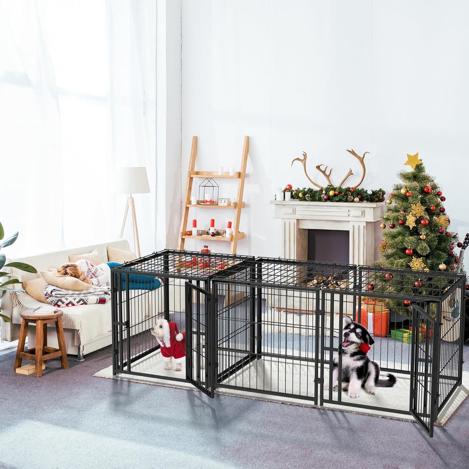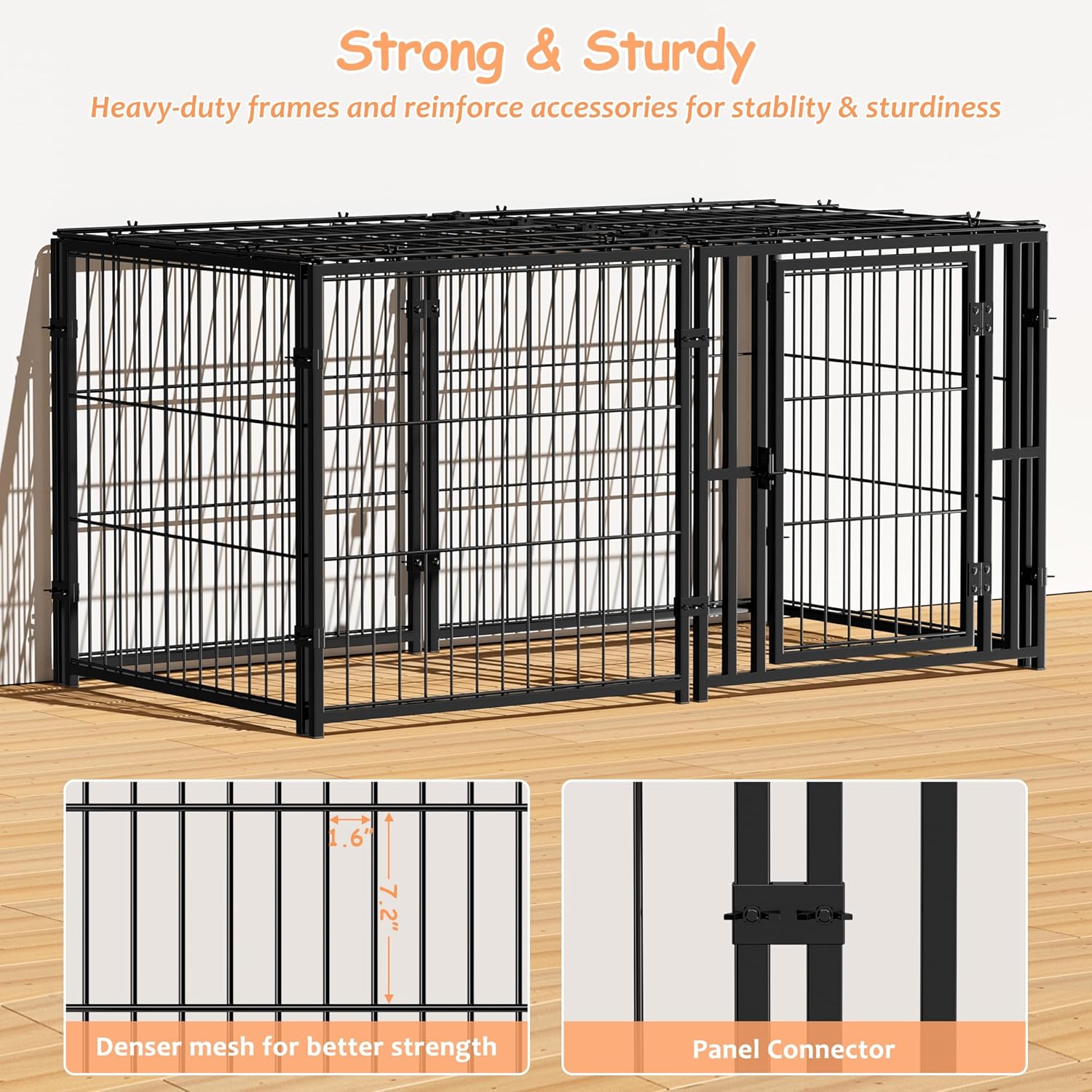 Resistente y segura La jaula para perros está fabricada con un marco resistente y con 4 cerraduras seguras, esta jaula para perros ofrece una construcción de alambre de metal resistente al óxido con superficies lisas y sin bordes. Es un hogar seguro y estable para tu amigo peludo.
