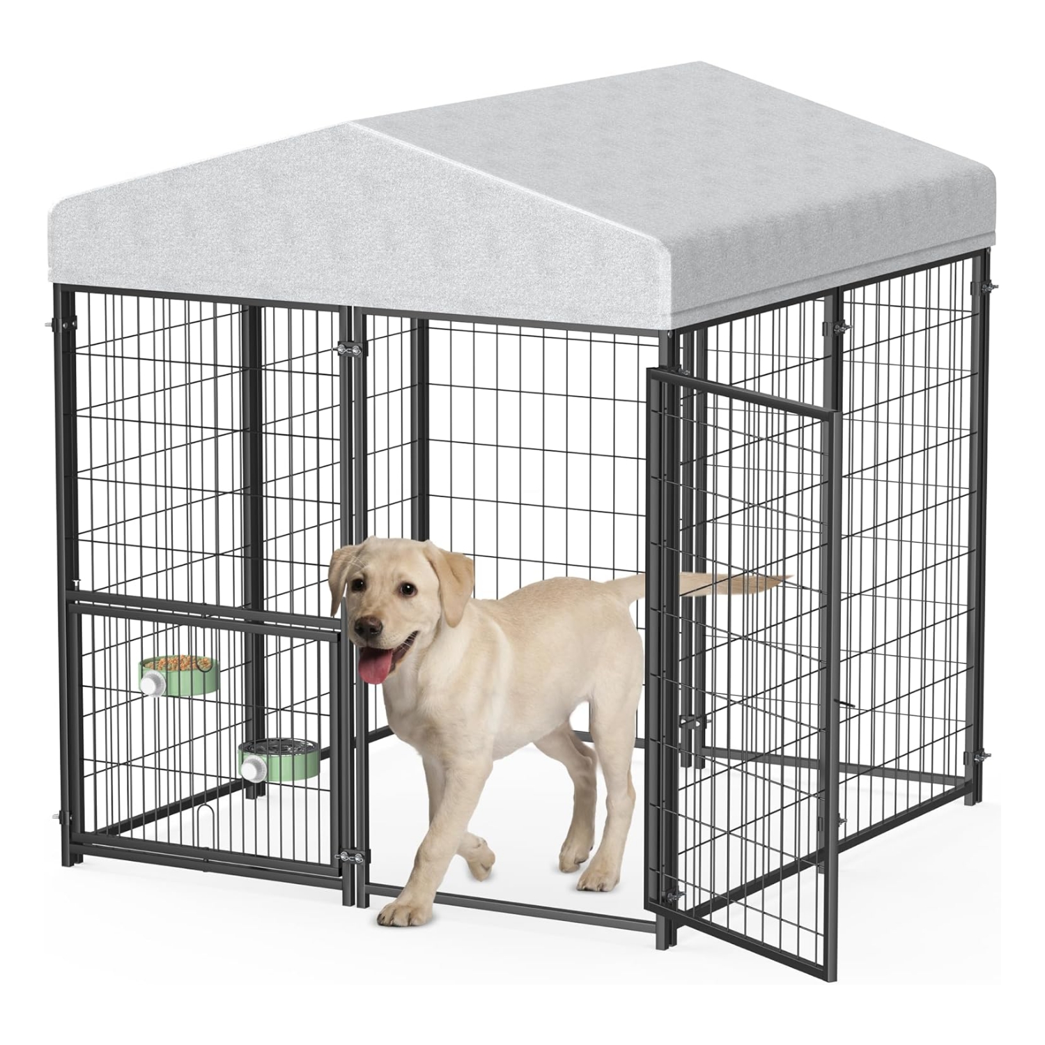 Jaula de Metal para Perros de Exterior – Con Techo, Comederos (124x122x134 cm)